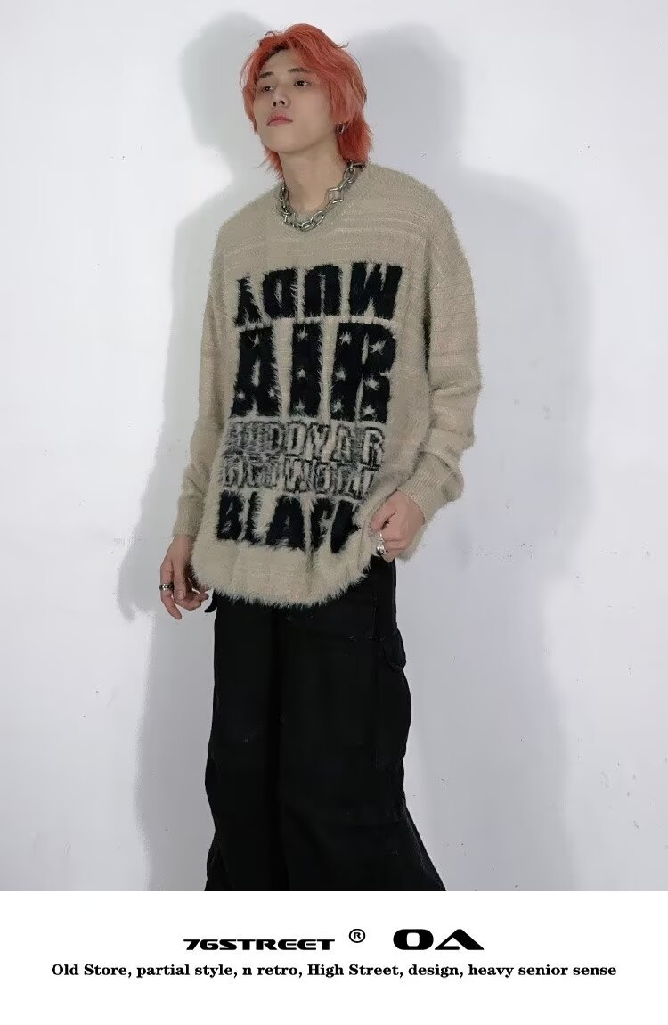 가을과 겨울 자카드 밍크 벨벳 스웨터 남자 크루 넥 풀오버 캐주얼 트렌디 브랜드 학생 학술 스타일 따뜻한 복고풍 스웨터