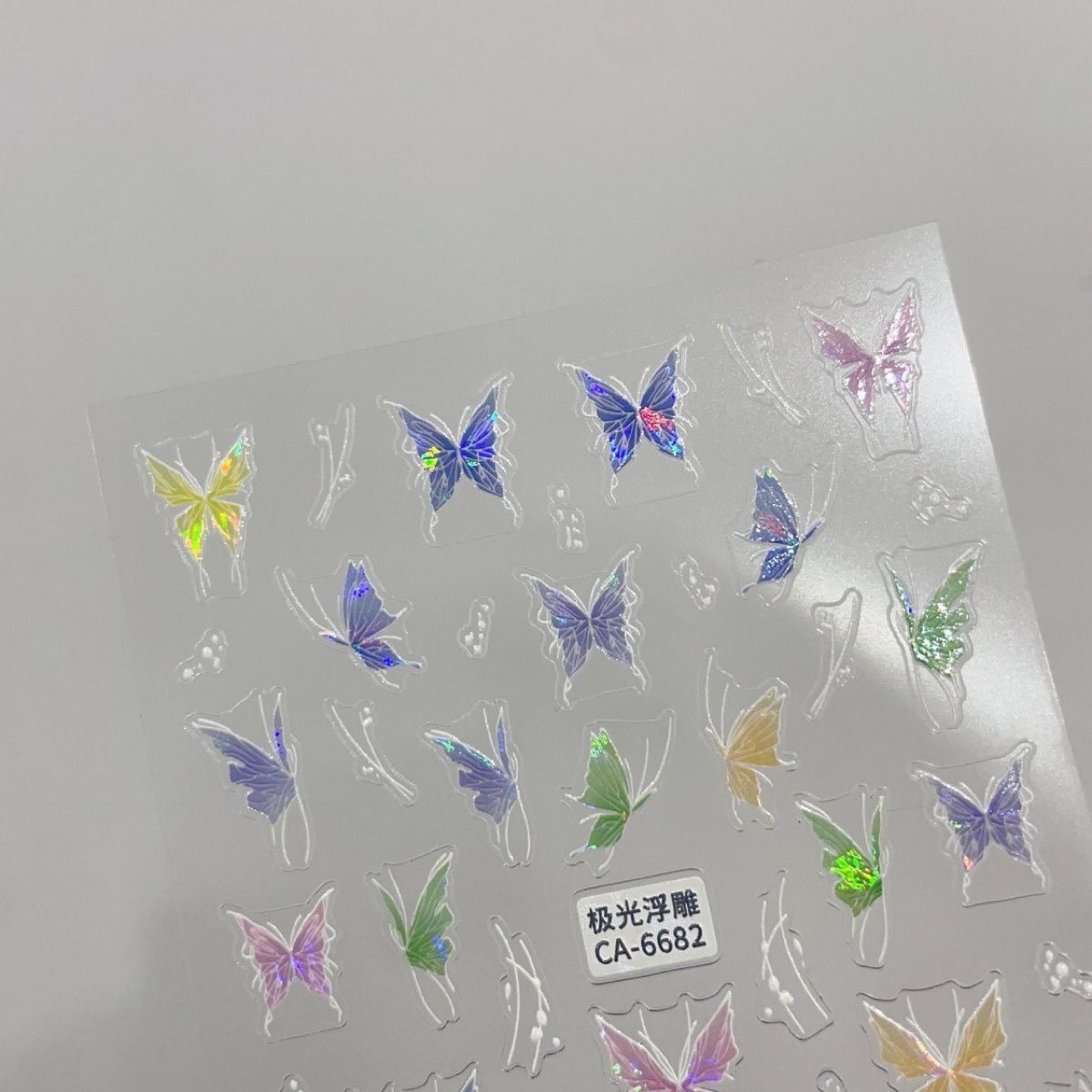 쉘 라이트 컬러 나비 펄럭이는 네일 아트 스티커 새로운 봄 도파민 작은 나비 슈퍼 요정 컬러 나비 네일 스티커