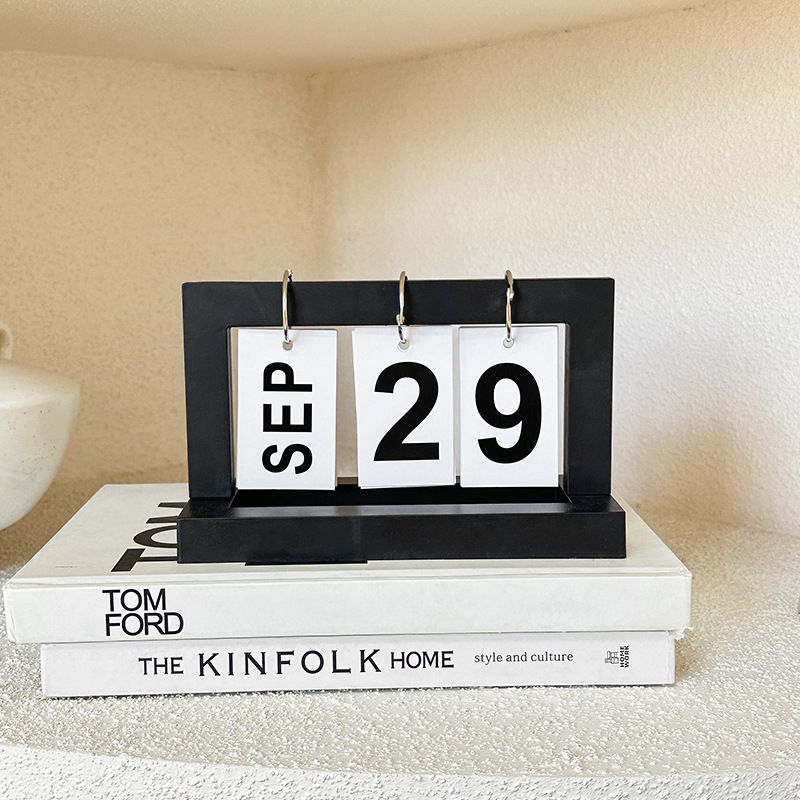 Ins 스타일 달력 나무 페이지 선회 날짜 데스크 달력 2025 새로운 침실 거실 데스크탑 장식품 촬영 소품