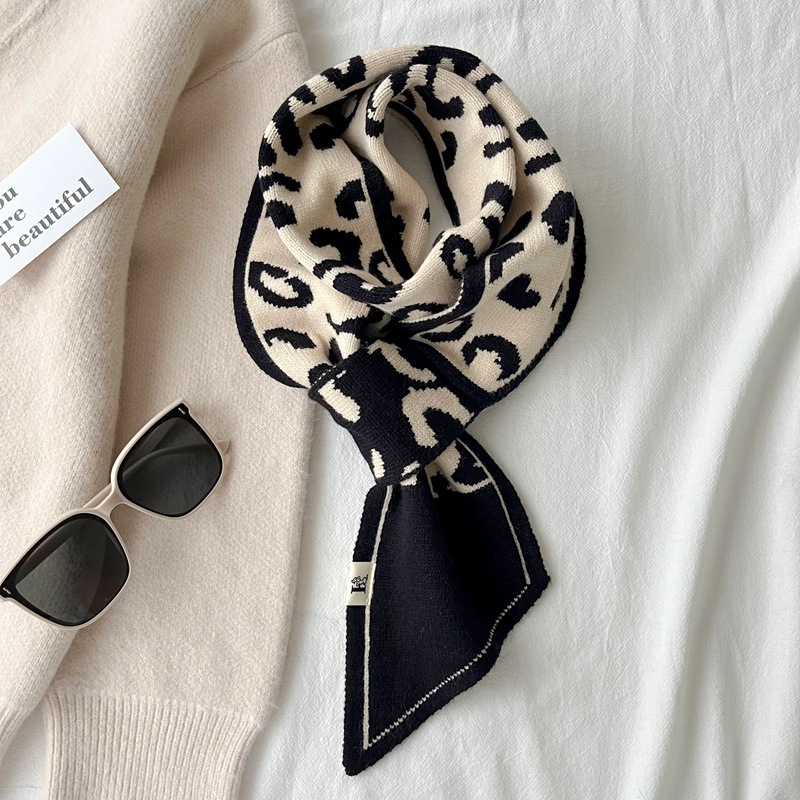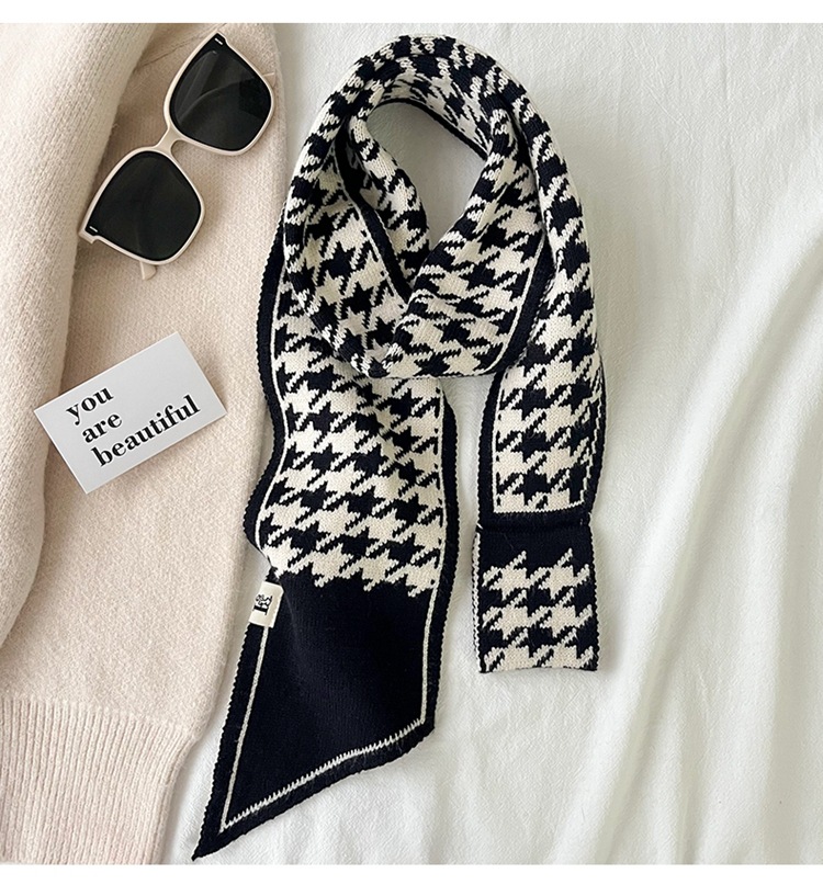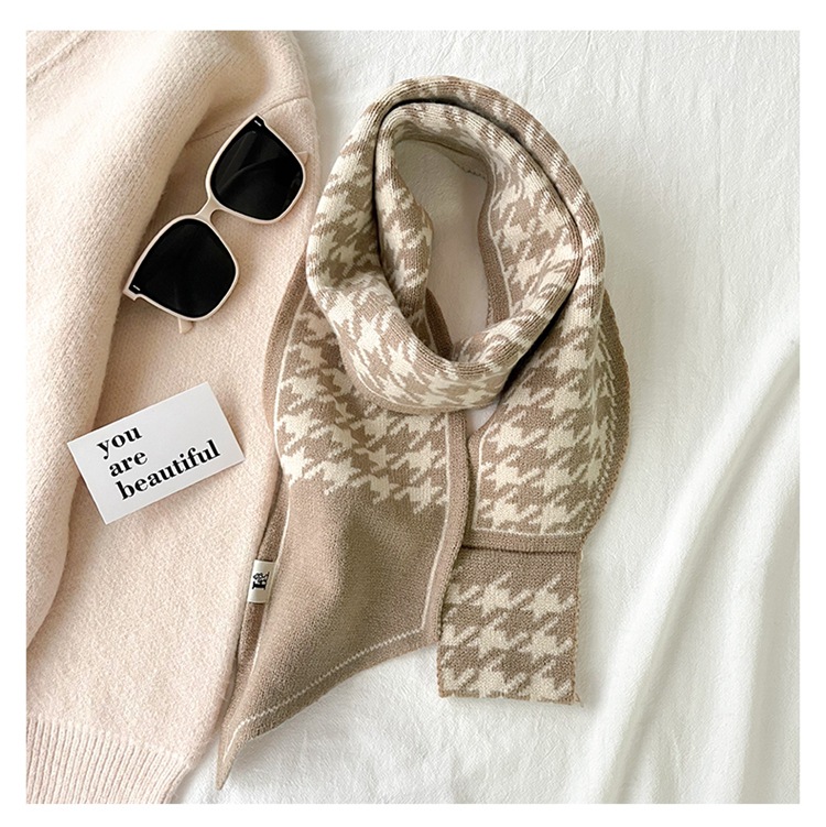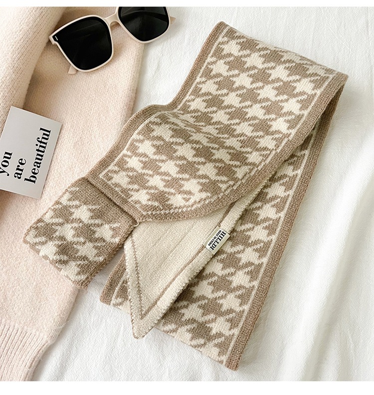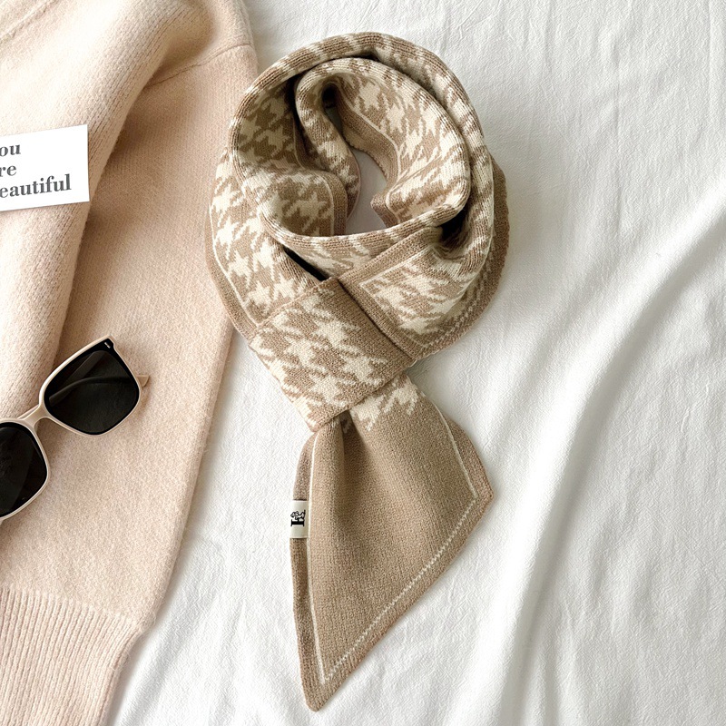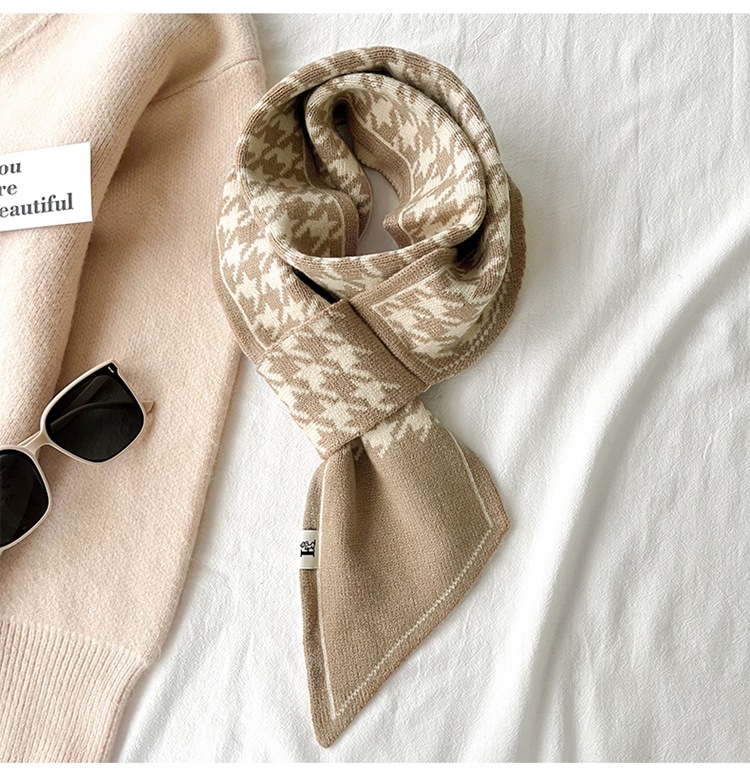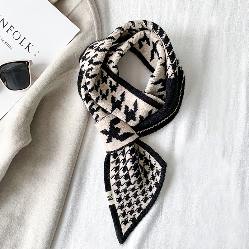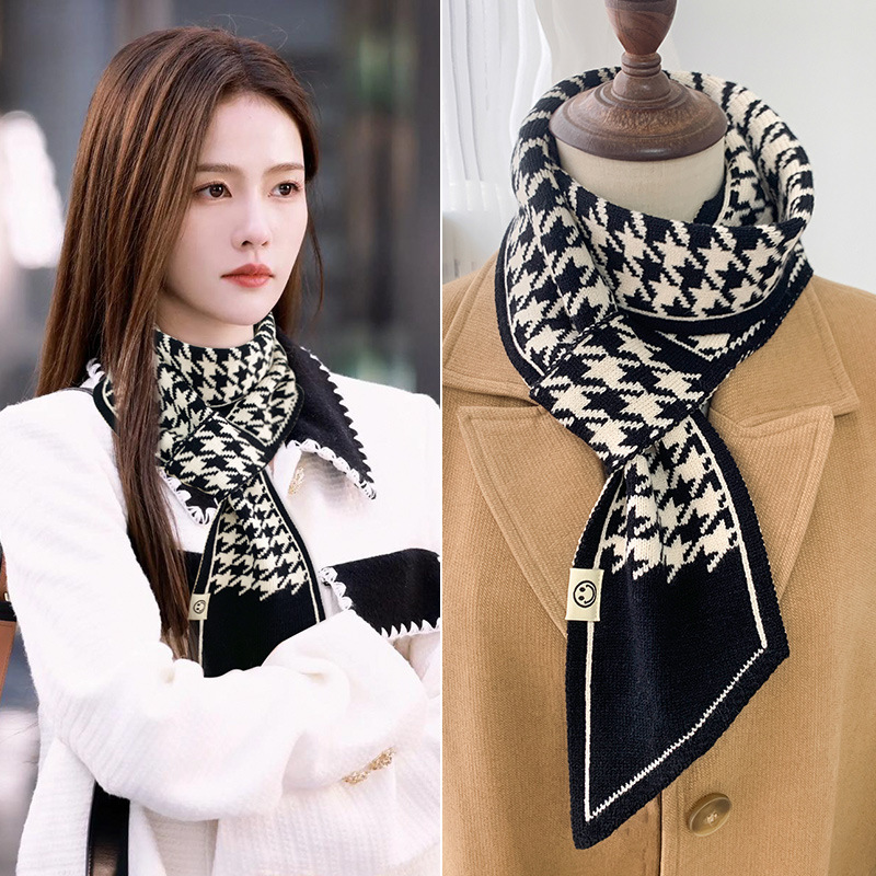 스카프 여자 2024 년 새로운 겨울 삼각형 목 보호 작은 랩 목 하운드 실크 스카프 니트 따뜻한 올 매치