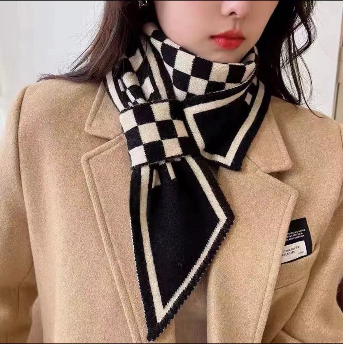 스카프 여자 2024 년 새로운 겨울 삼각형 목 보호 작은 랩 목 하운드 실크 스카프 니트 따뜻한 올 매치스토어 가기