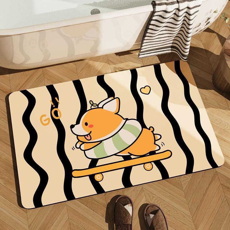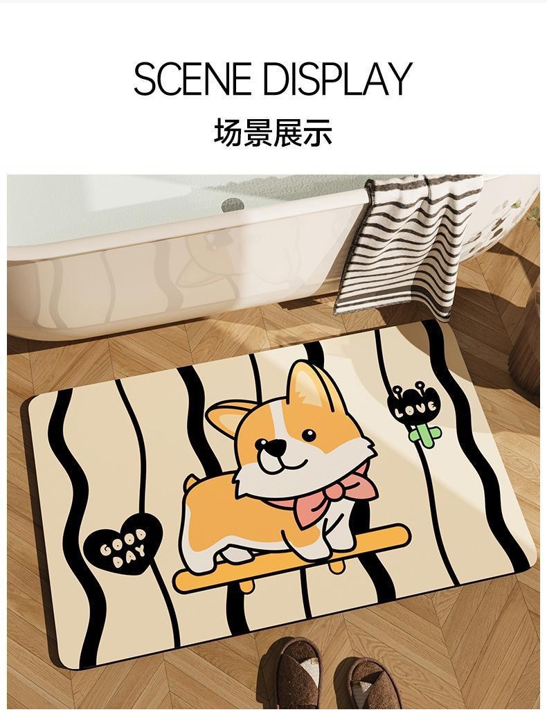 국경 간 만화 욕실 Diatom 진흙 매트 흡수성 빠른 건조 매트 미끄럼 방지 슬러지 방지 화장실 문 매트스토어 가기