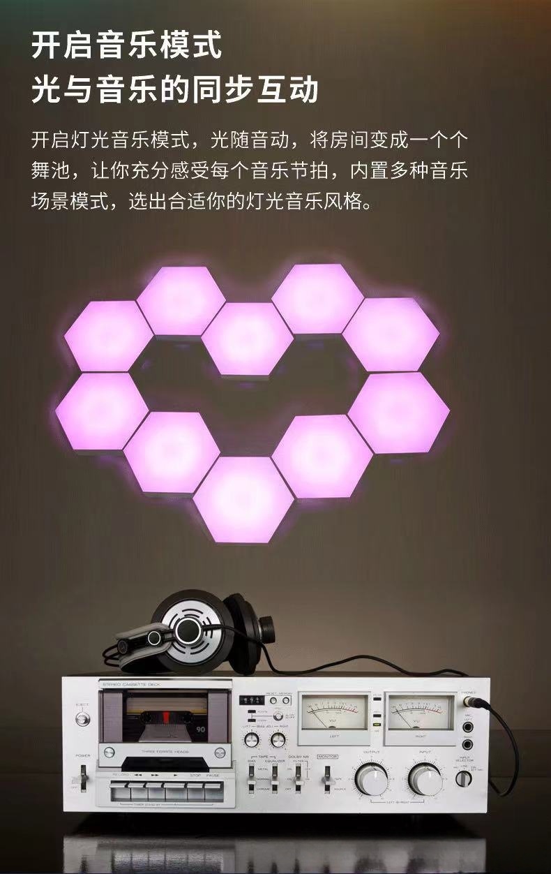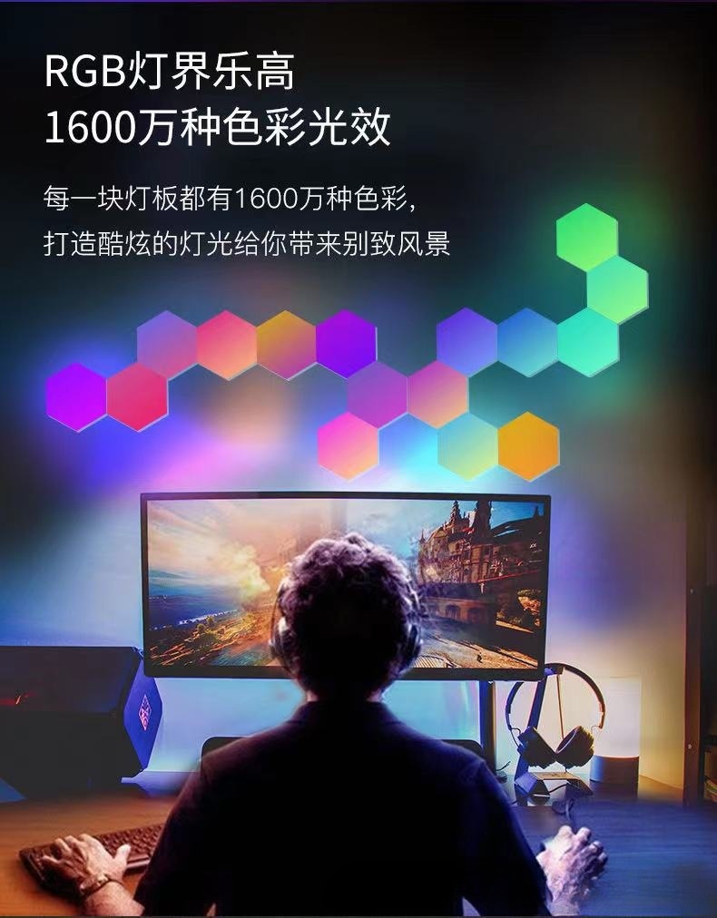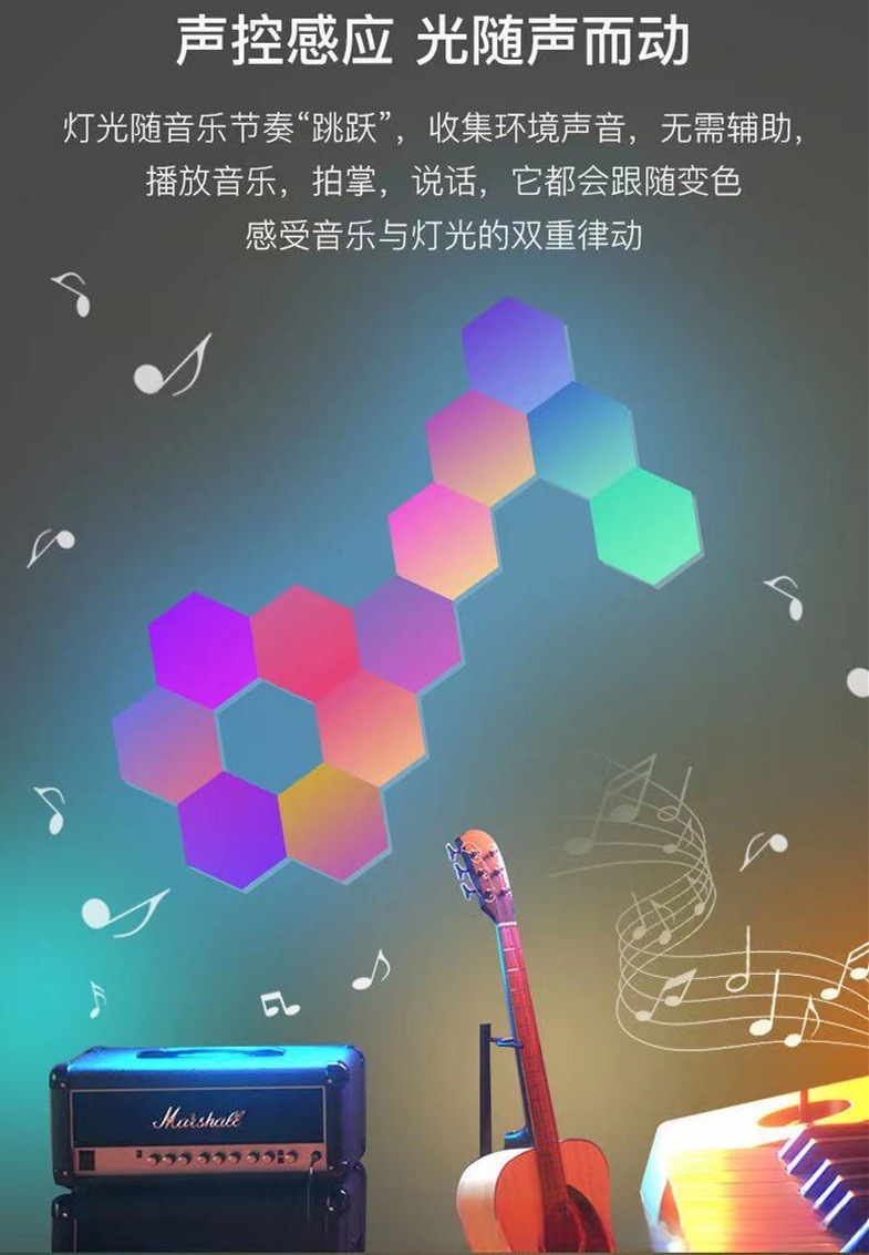 육각형 양자 램프 전기 경쟁 룸 분위기 램프 접합 통합 벌집 매직 컬러 픽업 램프 침실 벽 램프 야간 조명