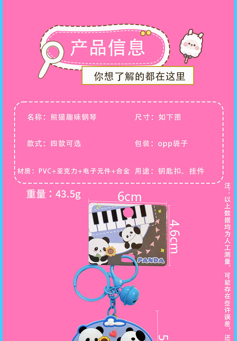 크리 에이 티브 미니 팬더 피아노 펜던트 빛나는 퍼즐 핸드 헬드 게임 음악 전자 오르간 장난감 노트 키 체인