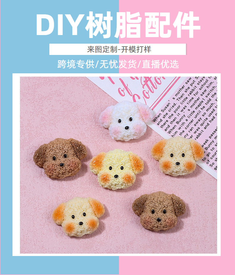 인공 봉제 강아지 머리 만화 크림 접착제 DIY 수제 머리핀 수제 냉장고 소재 수지 액세서리스토어 가기