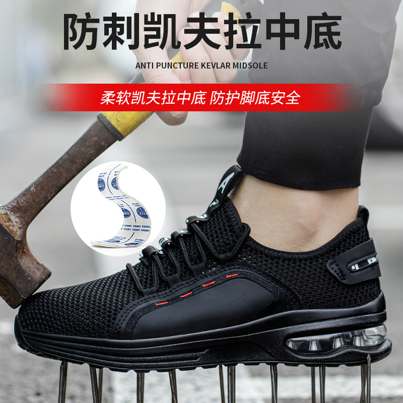 건설 현장을위한 스매싱 방지 및 피어싱 방지 강철 발가락 노동 보호 신발 남성 패션 국경 플러스 사이즈 경량 에어 쿠션 충격 흡수 새로운 남성 신발스토어 가기