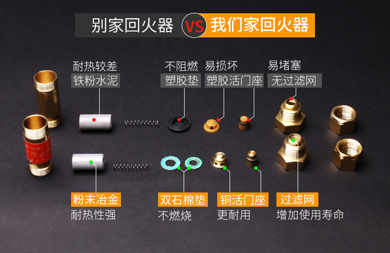 모든 구리 건식 템퍼링 밸브 HF-2 산소 아세틸렌 프로판 가스 미터 가스 튜브 리턴 화염 절단 가스 체크 밸브