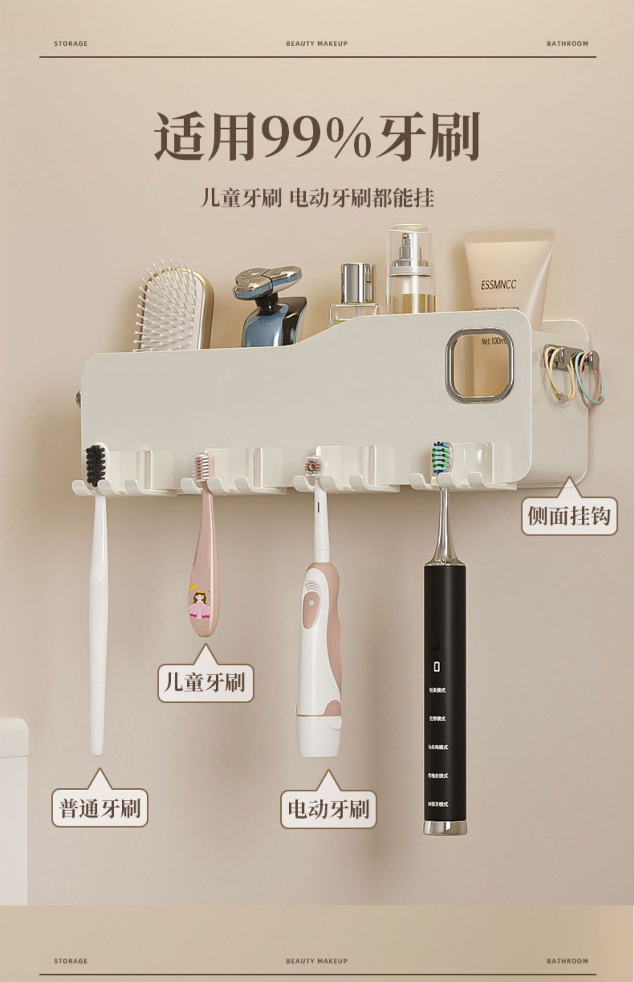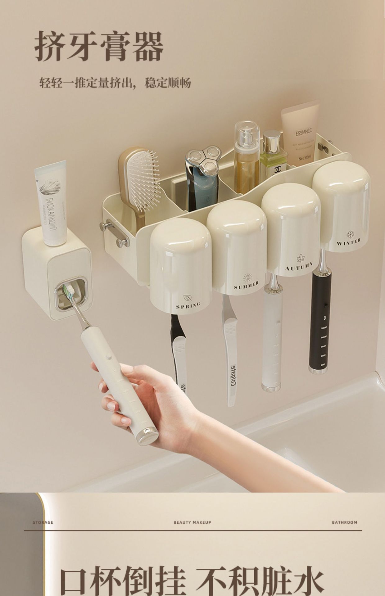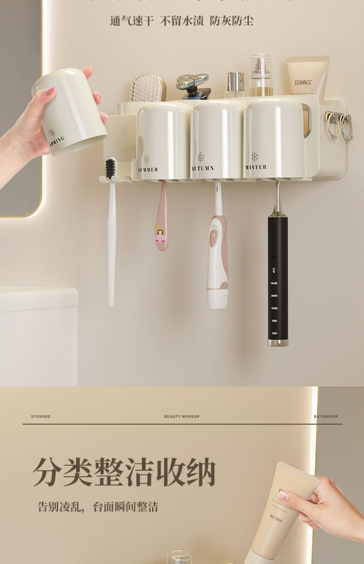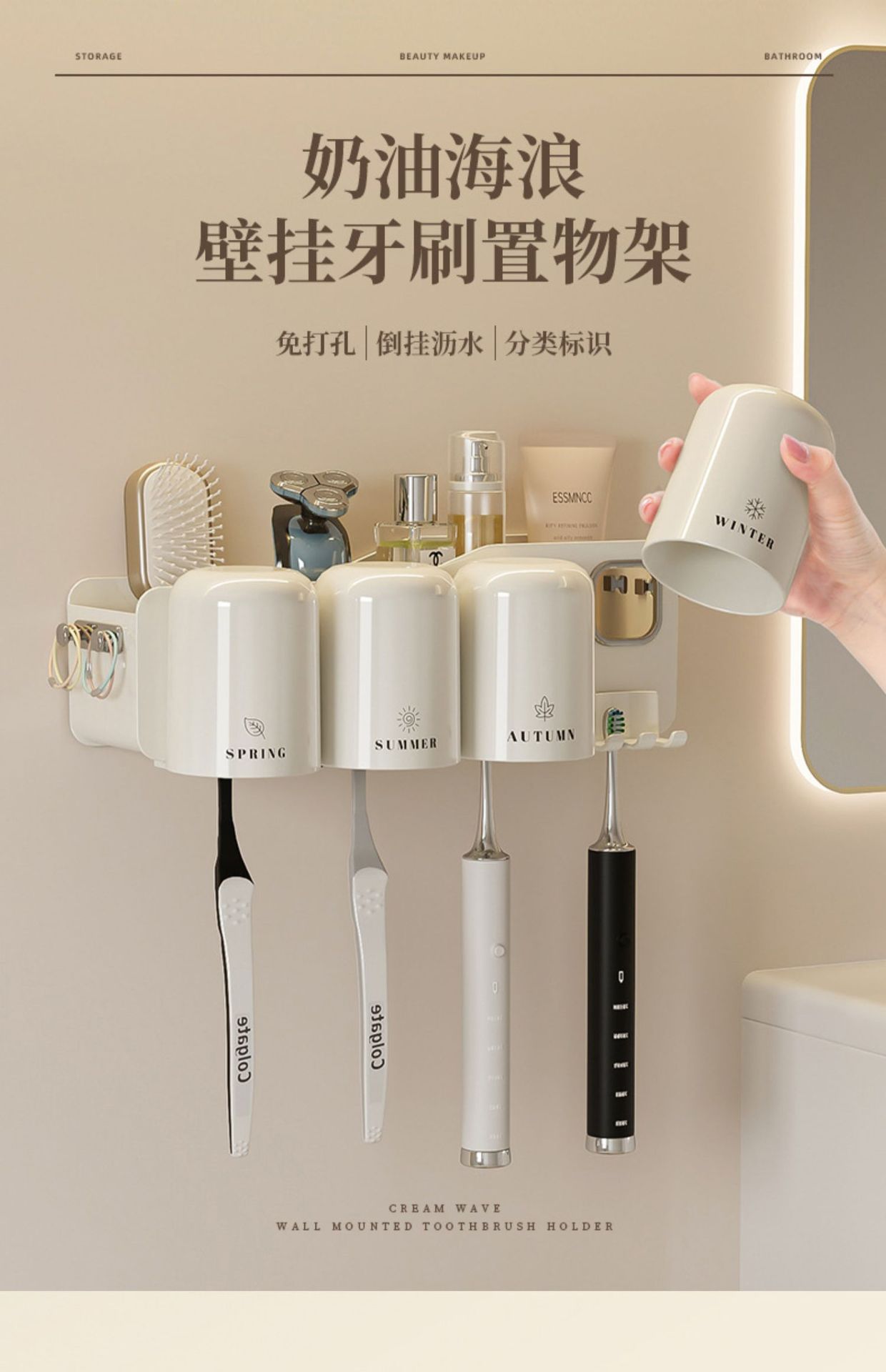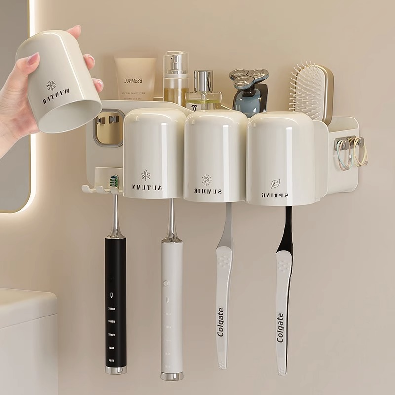 칫솔 랙 스토리지 랙 화장실 펀치-벽걸이 형 벽 장착 워클 전기 브러시 컵 치약 컵 진쑤언