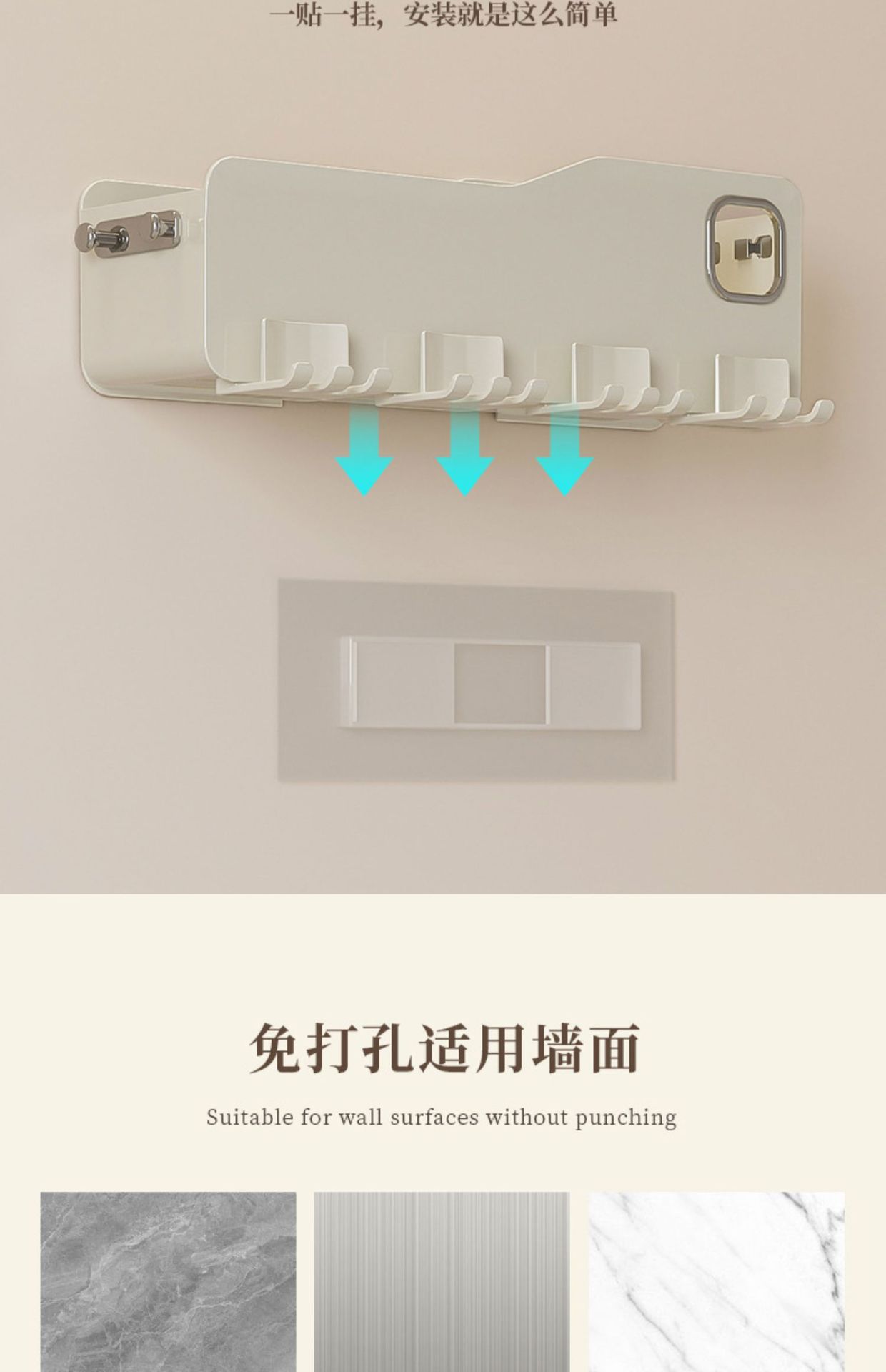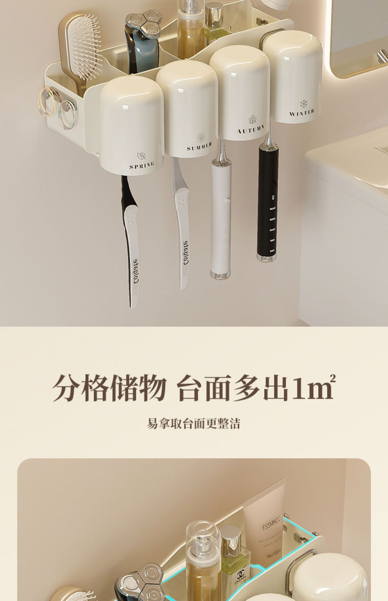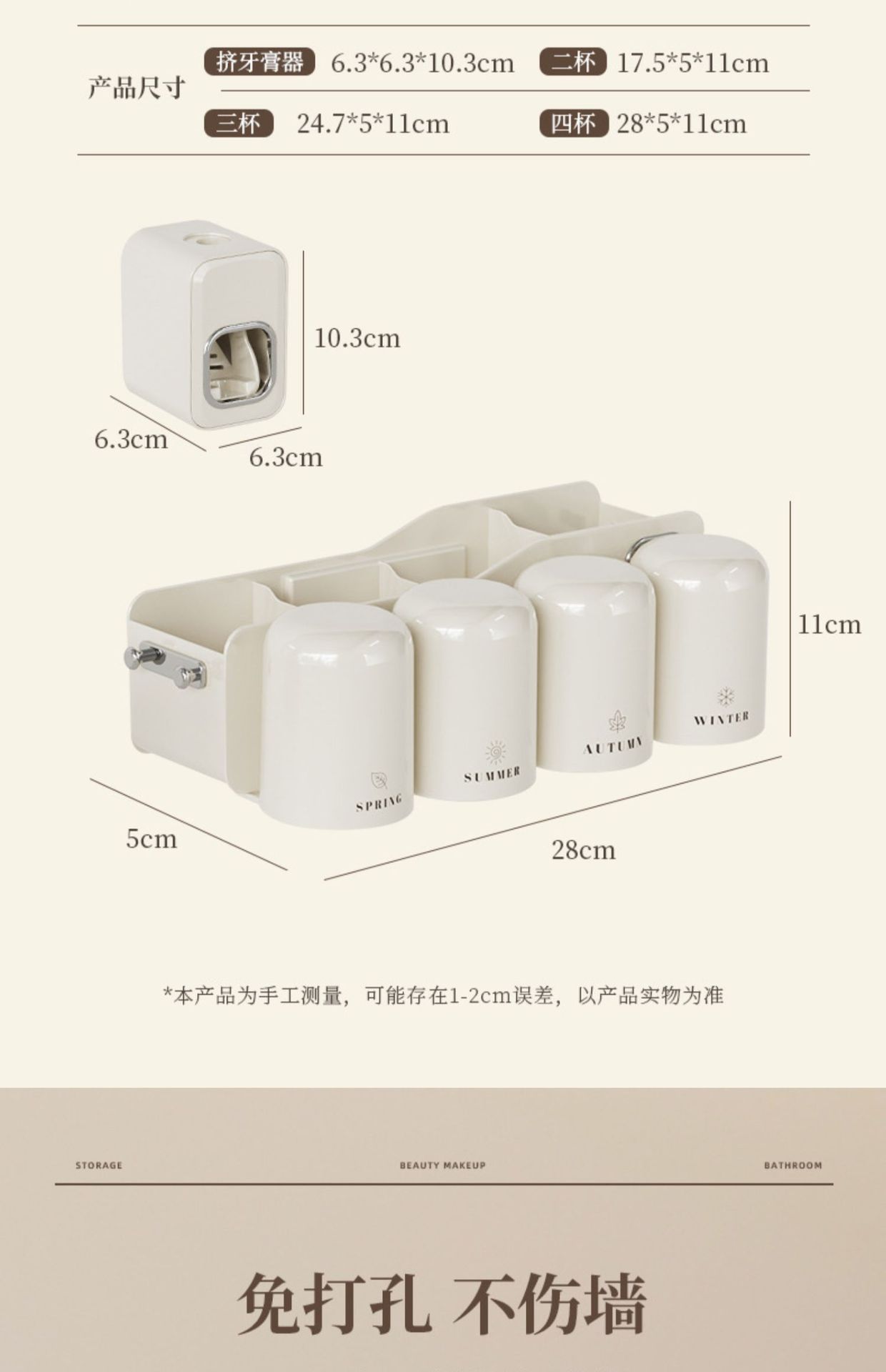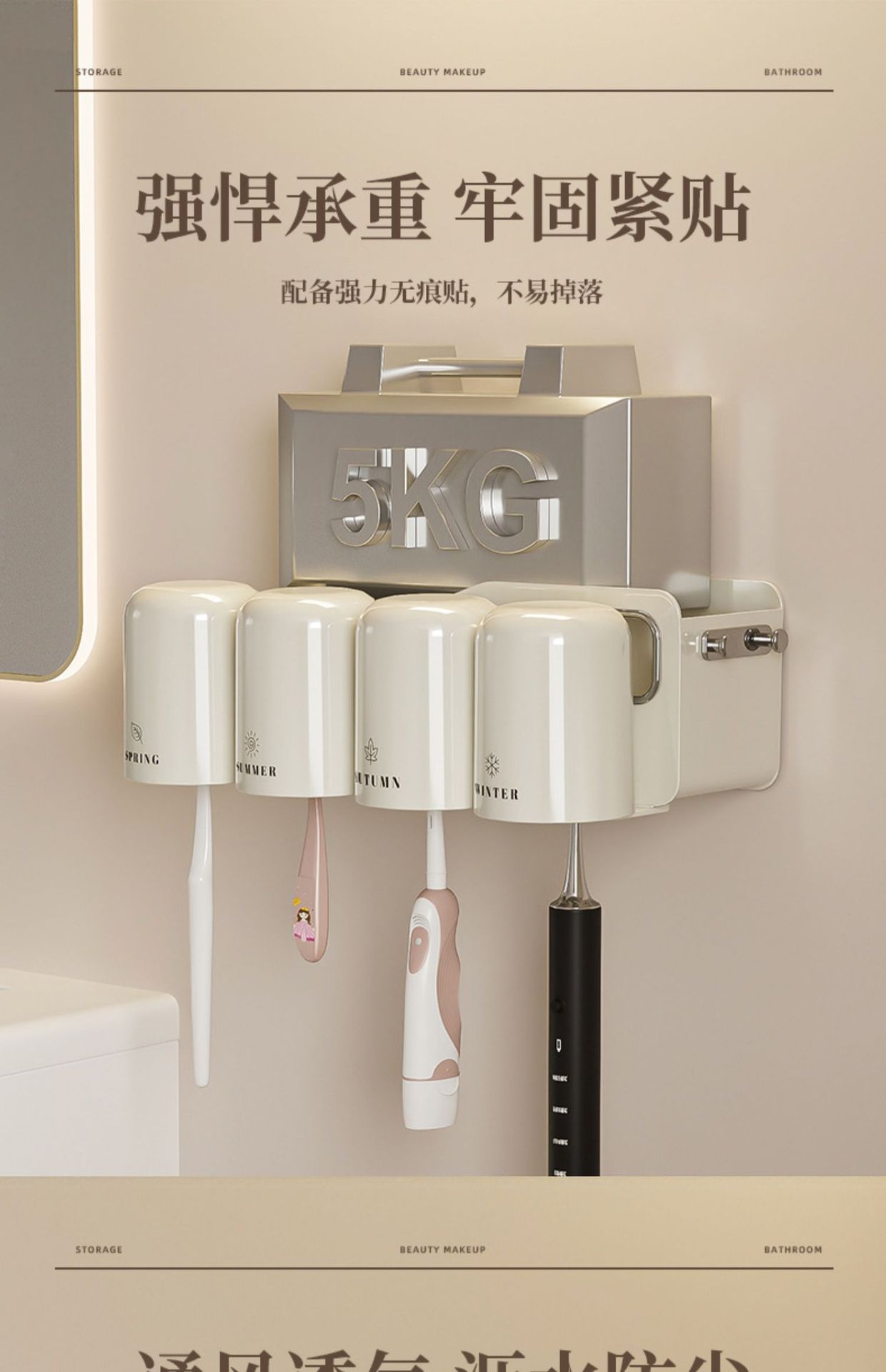 칫솔 랙 스토리지 랙 화장실 펀치-벽걸이 형 벽 장착 워클 전기 브러시 컵 치약 컵 진쑤언