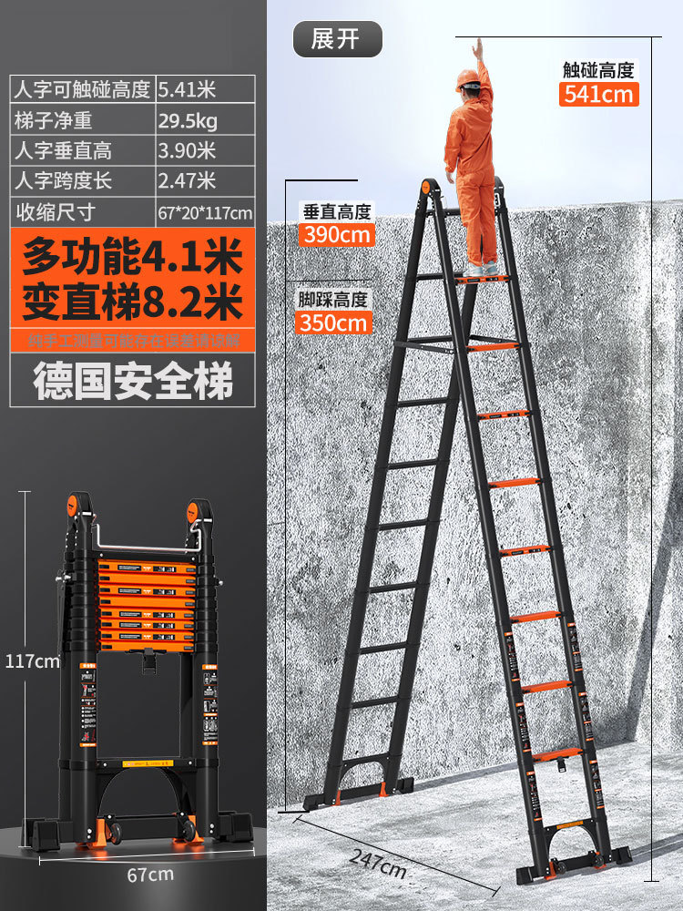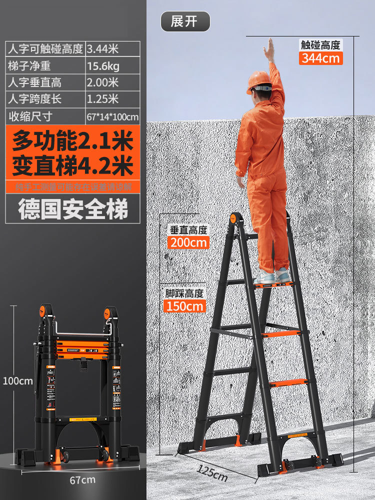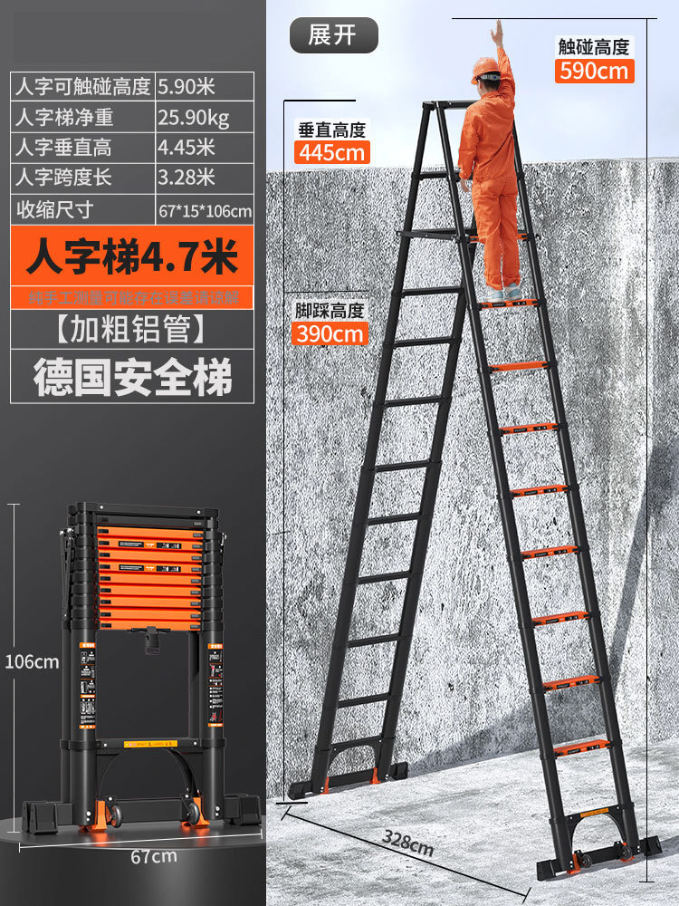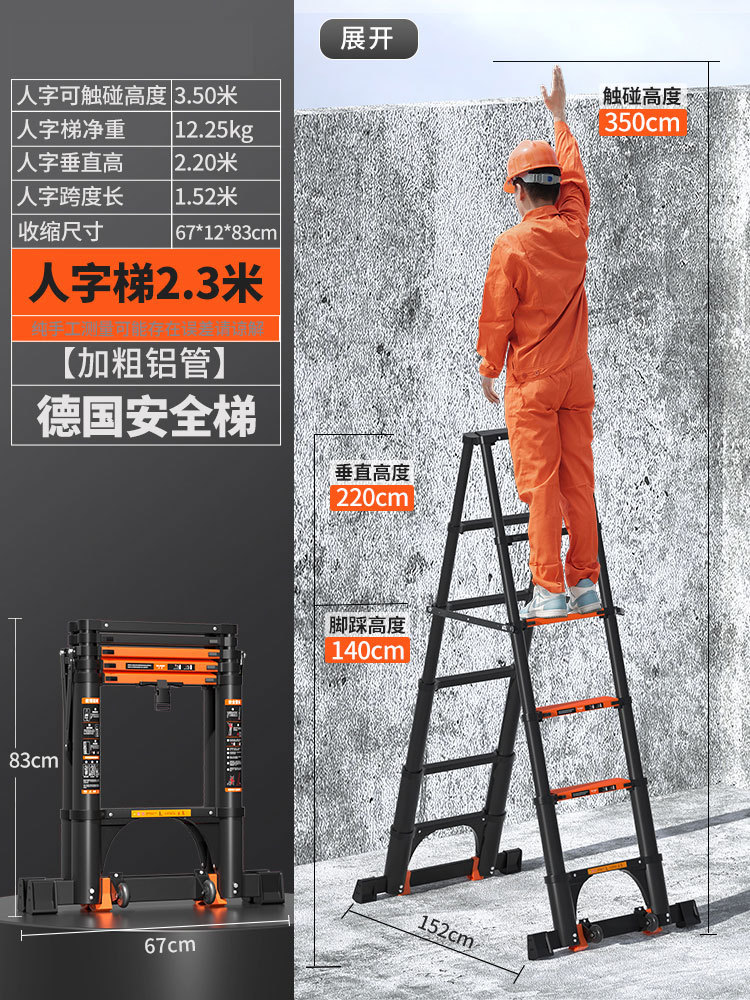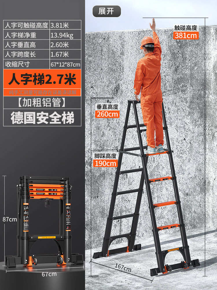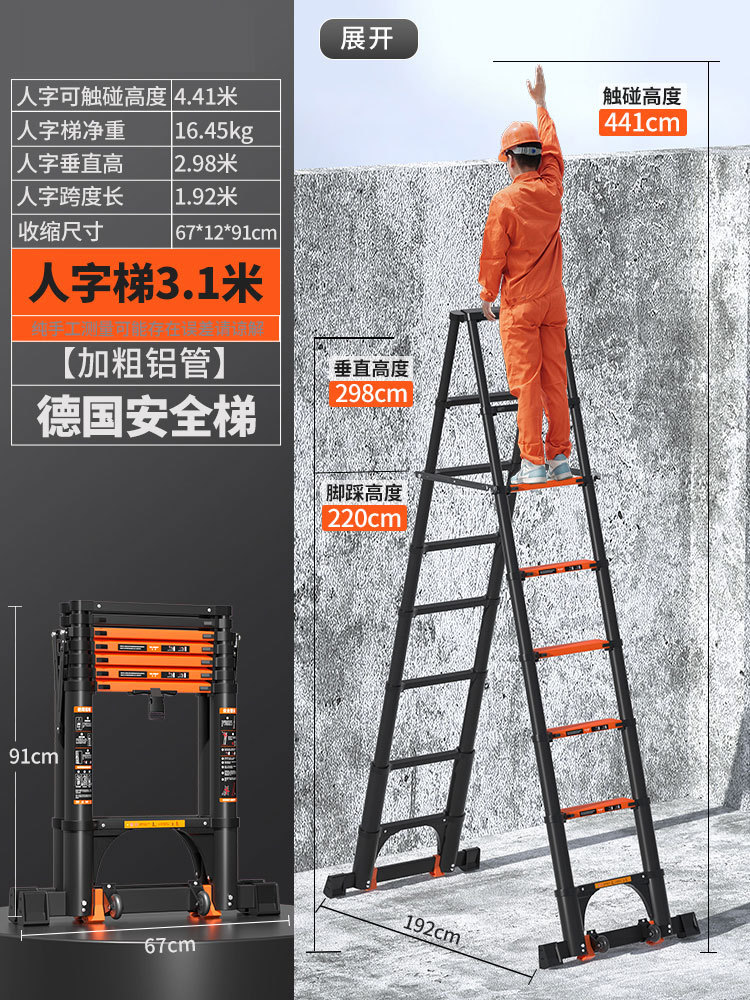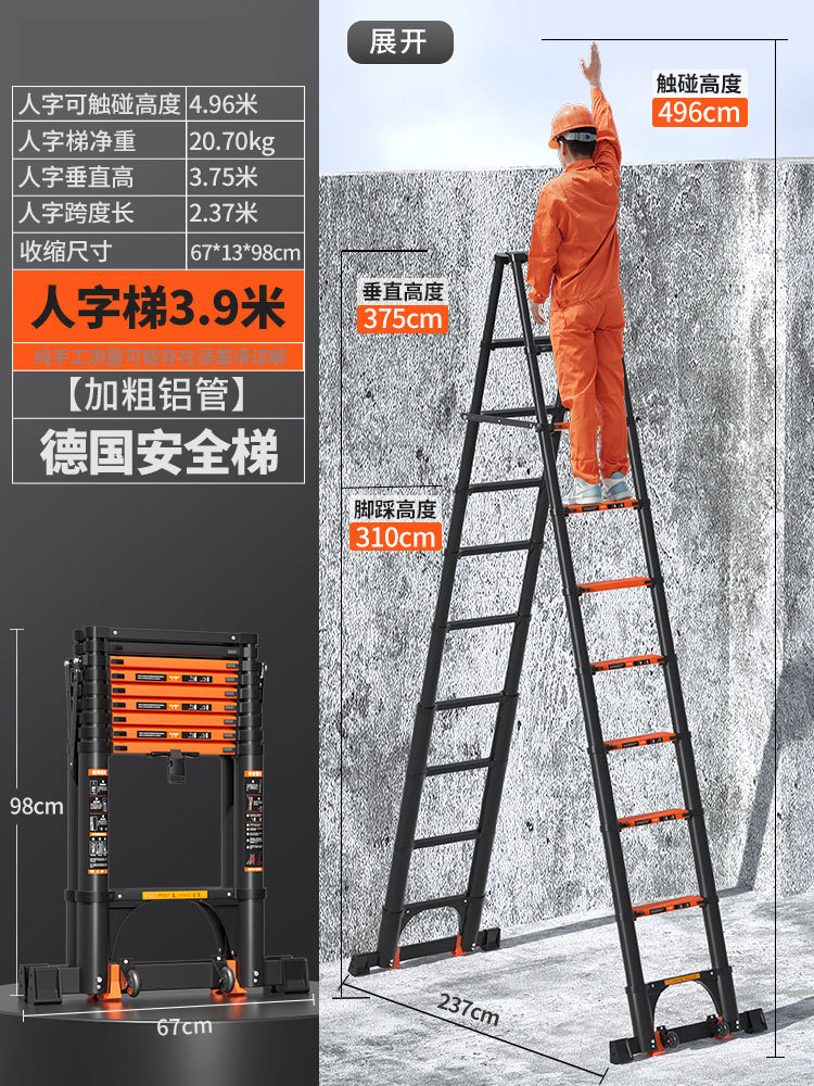 독일 사다리 가정용 접히는 망원경 휴대용 알루미늄 합금 두꺼운 헤링본 사다리 리프팅 엔지니어링 특수 다기능스토어 가기