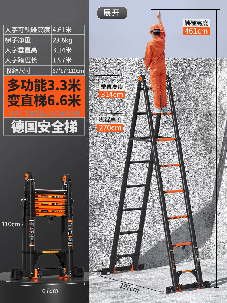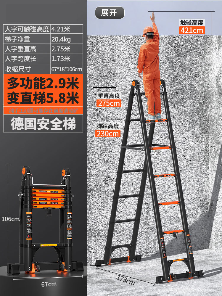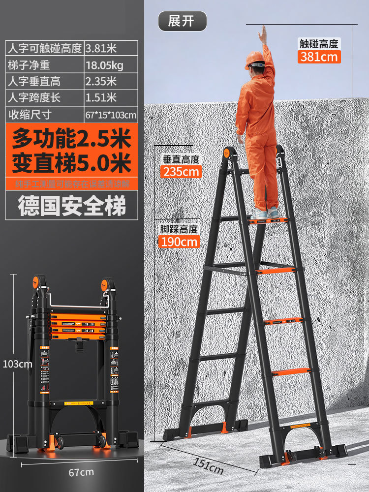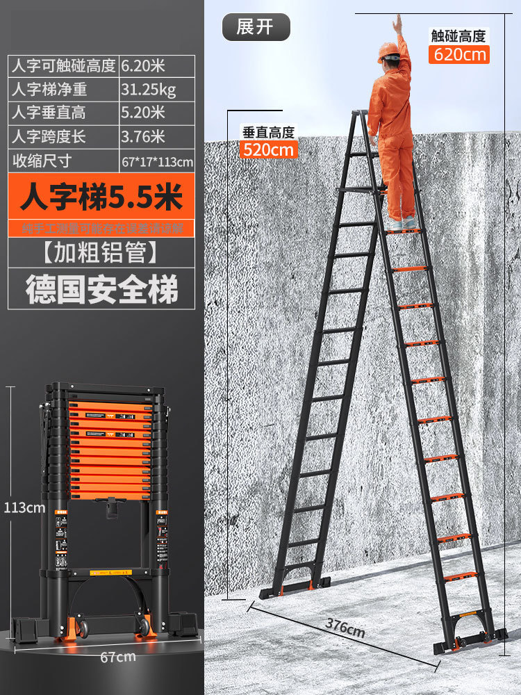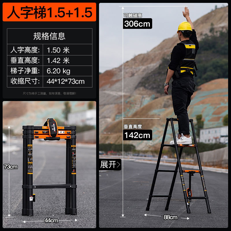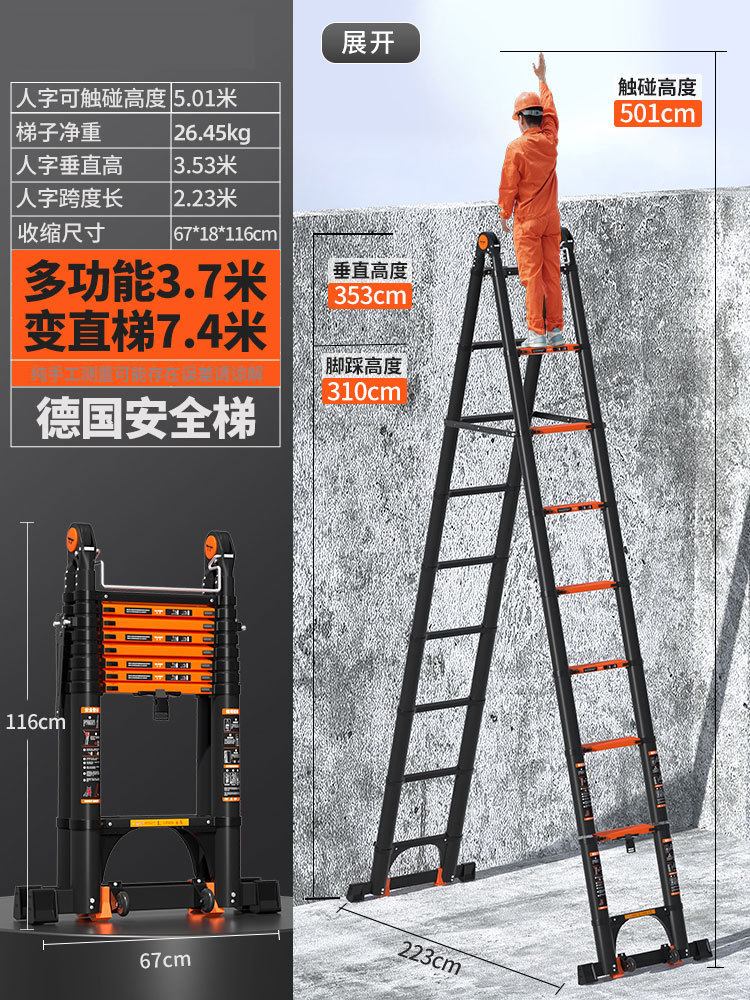 독일 사다리 가정용 접히는 망원경 휴대용 알루미늄 합금 두꺼운 헤링본 사다리 리프팅 엔지니어링 특수 다기능스토어 가기