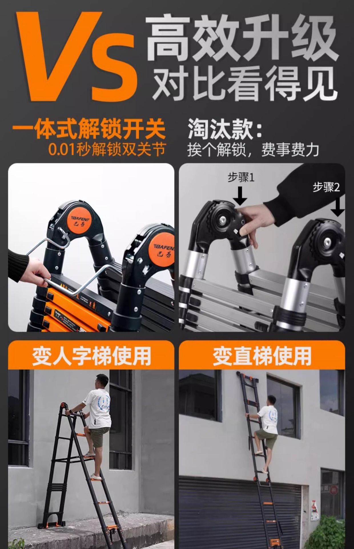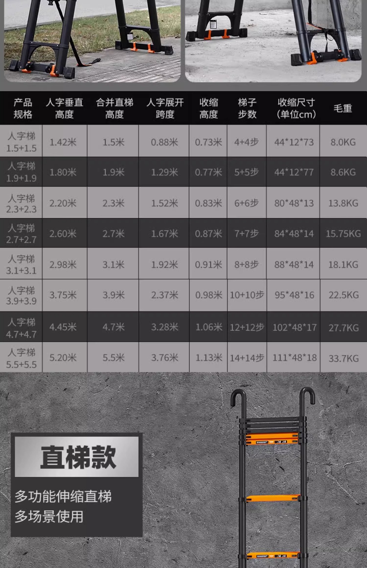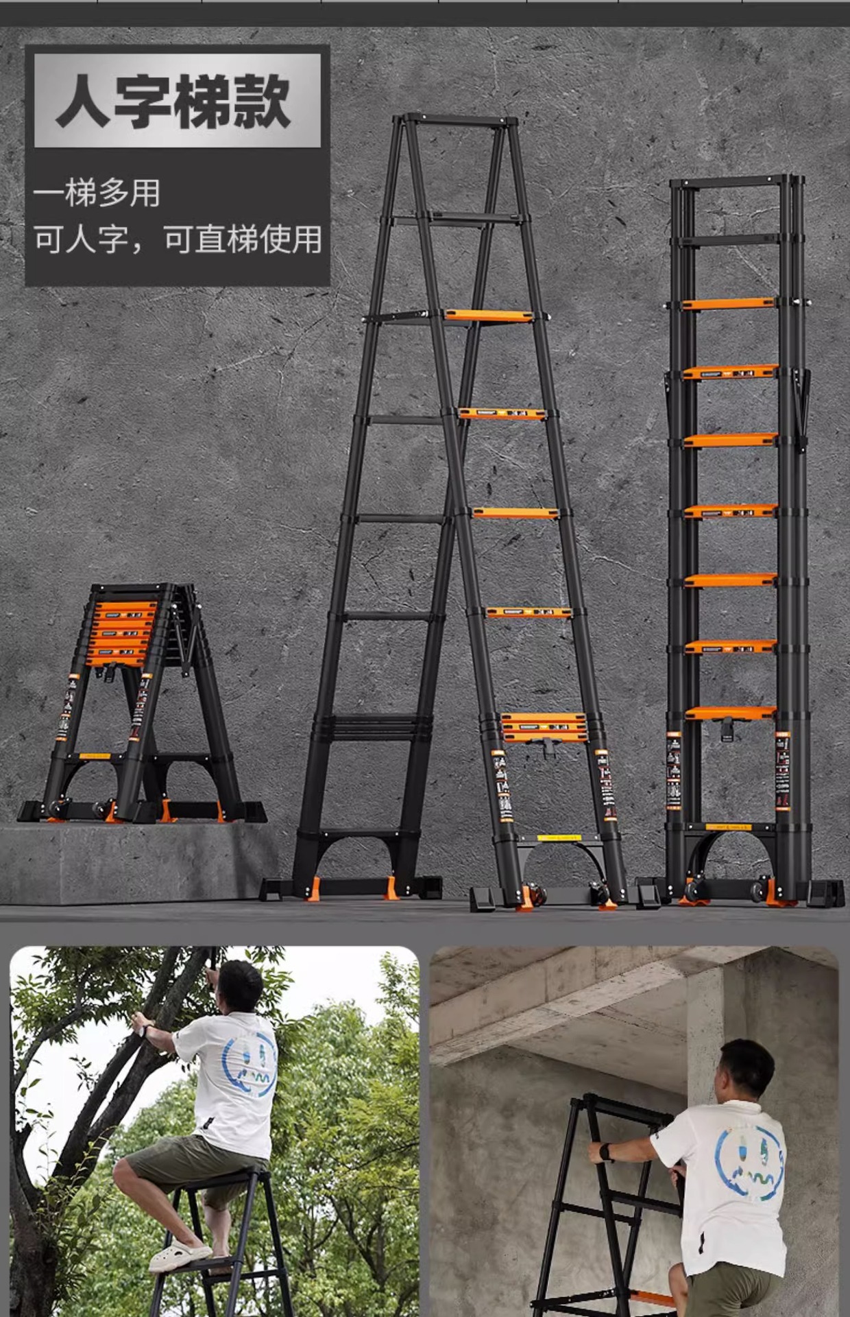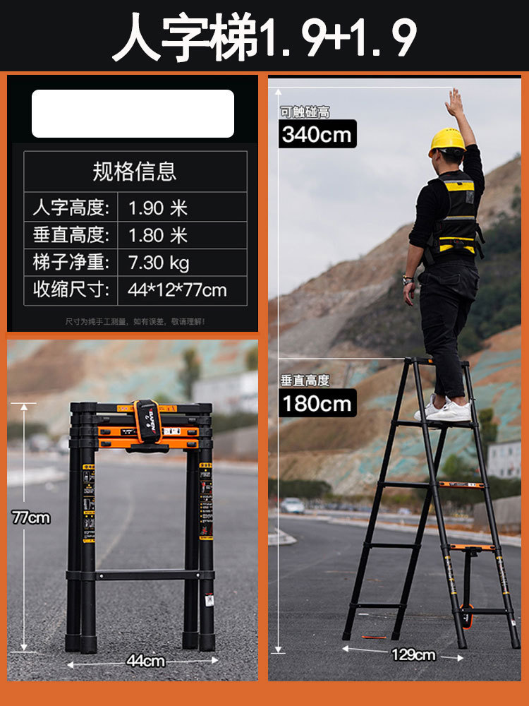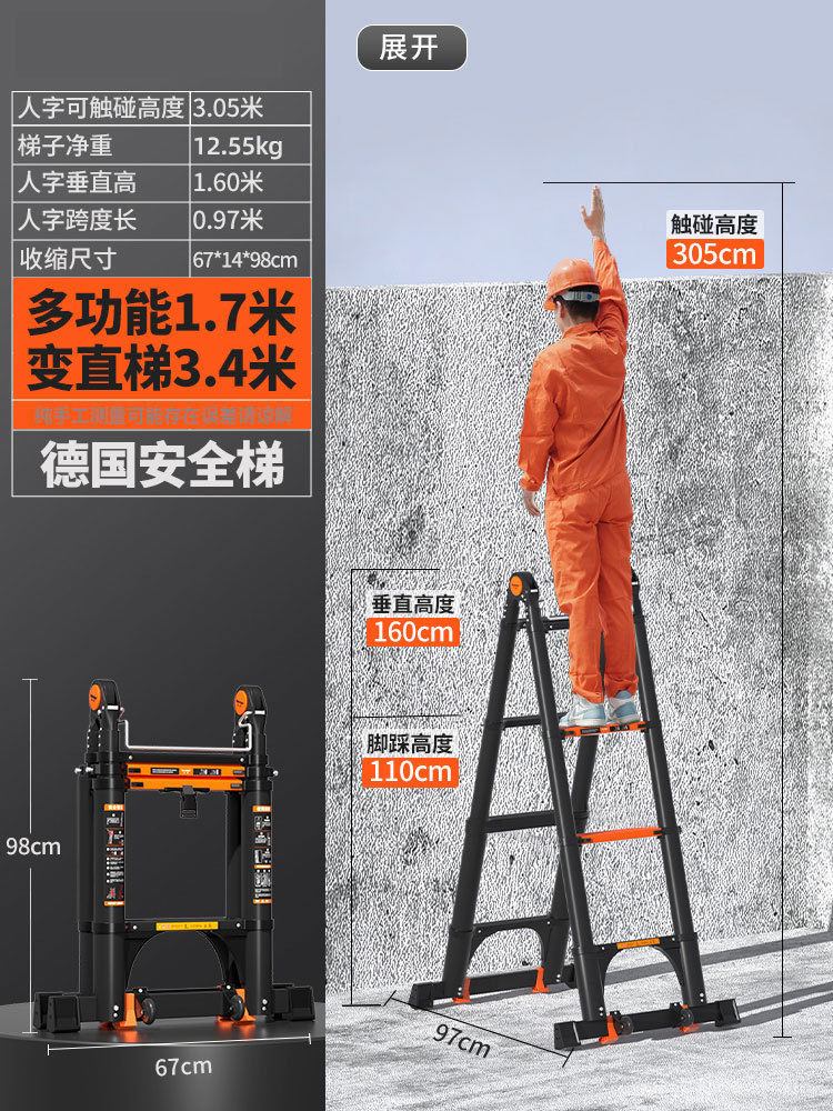 독일 사다리 가정용 접히는 망원경 휴대용 알루미늄 합금 두꺼운 헤링본 사다리 리프팅 엔지니어링 특수 다기능스토어 가기