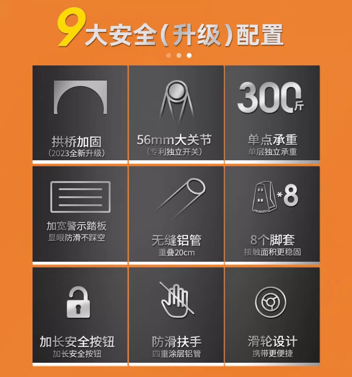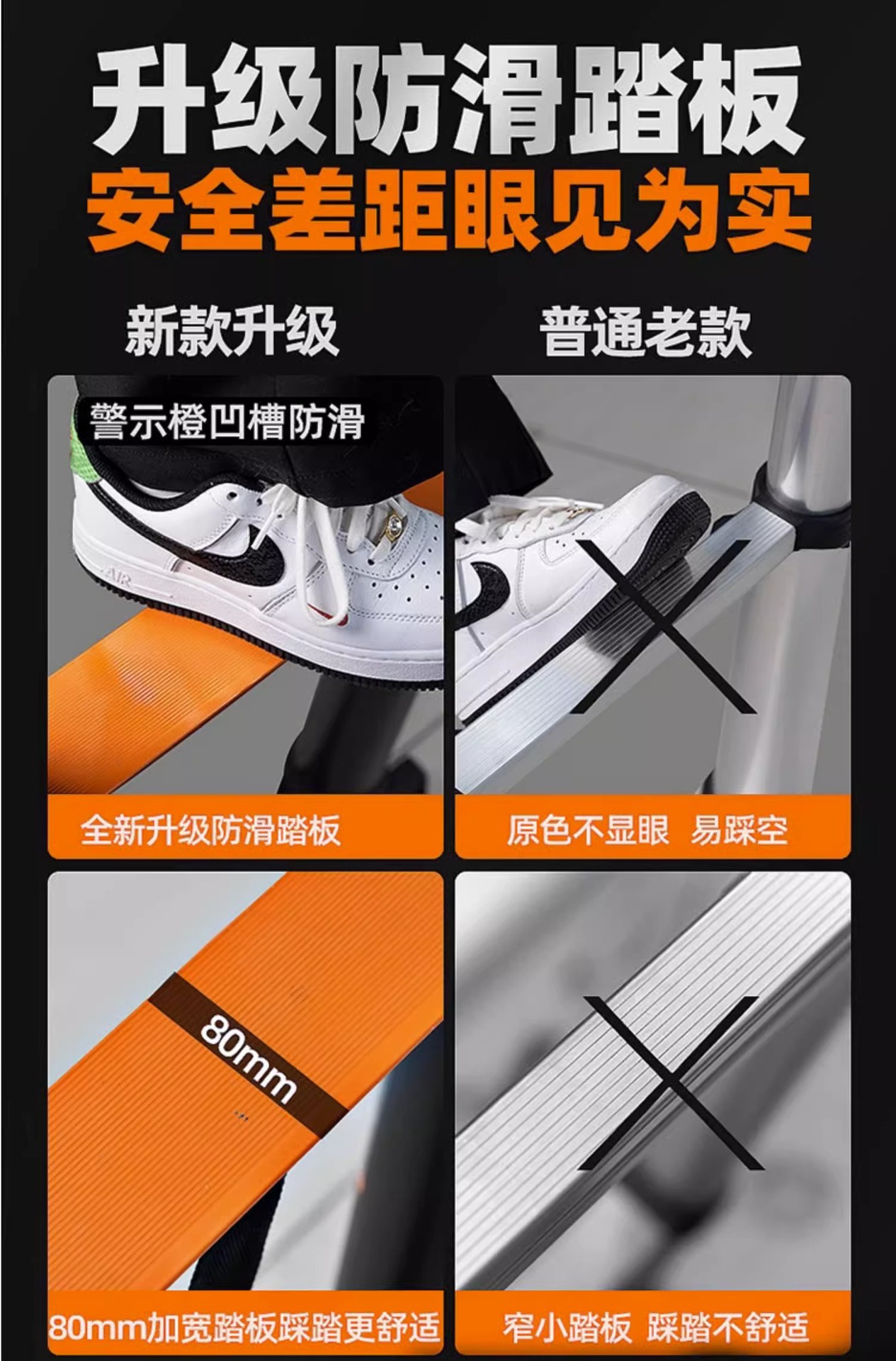 • 헤링본사다리 2.7m [80mm 미끄럼방지 경고페달 + 흔들림방지 아치브리지]