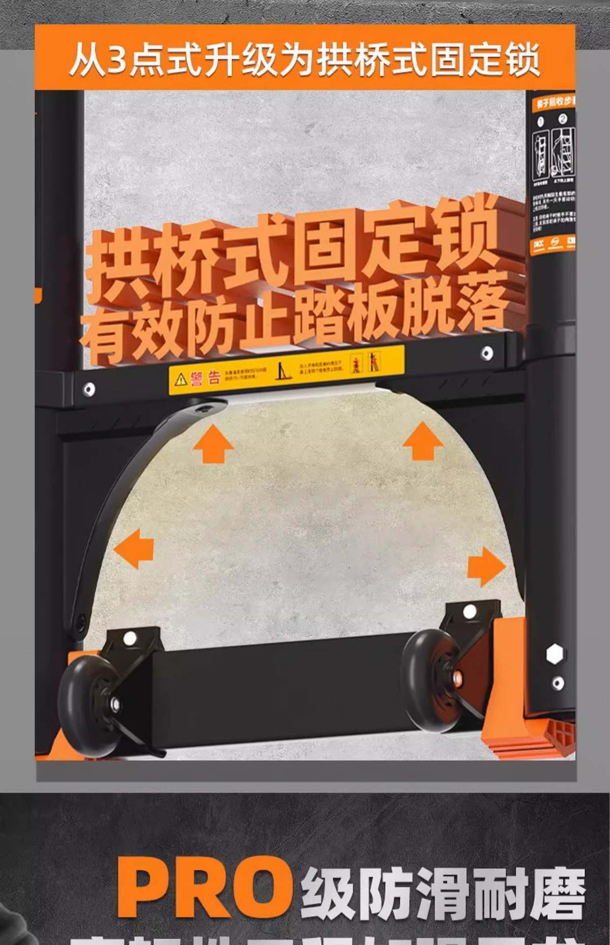 • 헤링본사다리 3.1m [80mm 미끄럼방지 경고페달 + 흔들림방지 아치브리지]