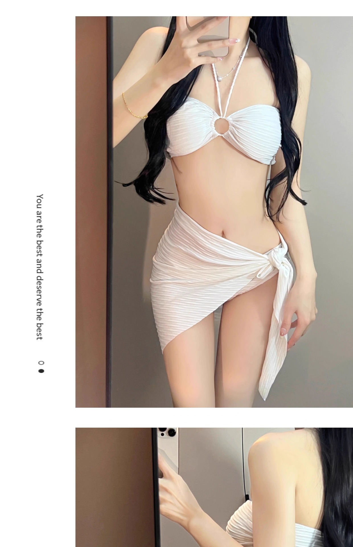 새로운 여성 온천 분할 비키니 3 피스 세트 스포츠 도매 바람 커버 스커트 태양 보호 섹시한 솔리드 컬러 삼각형 수영복