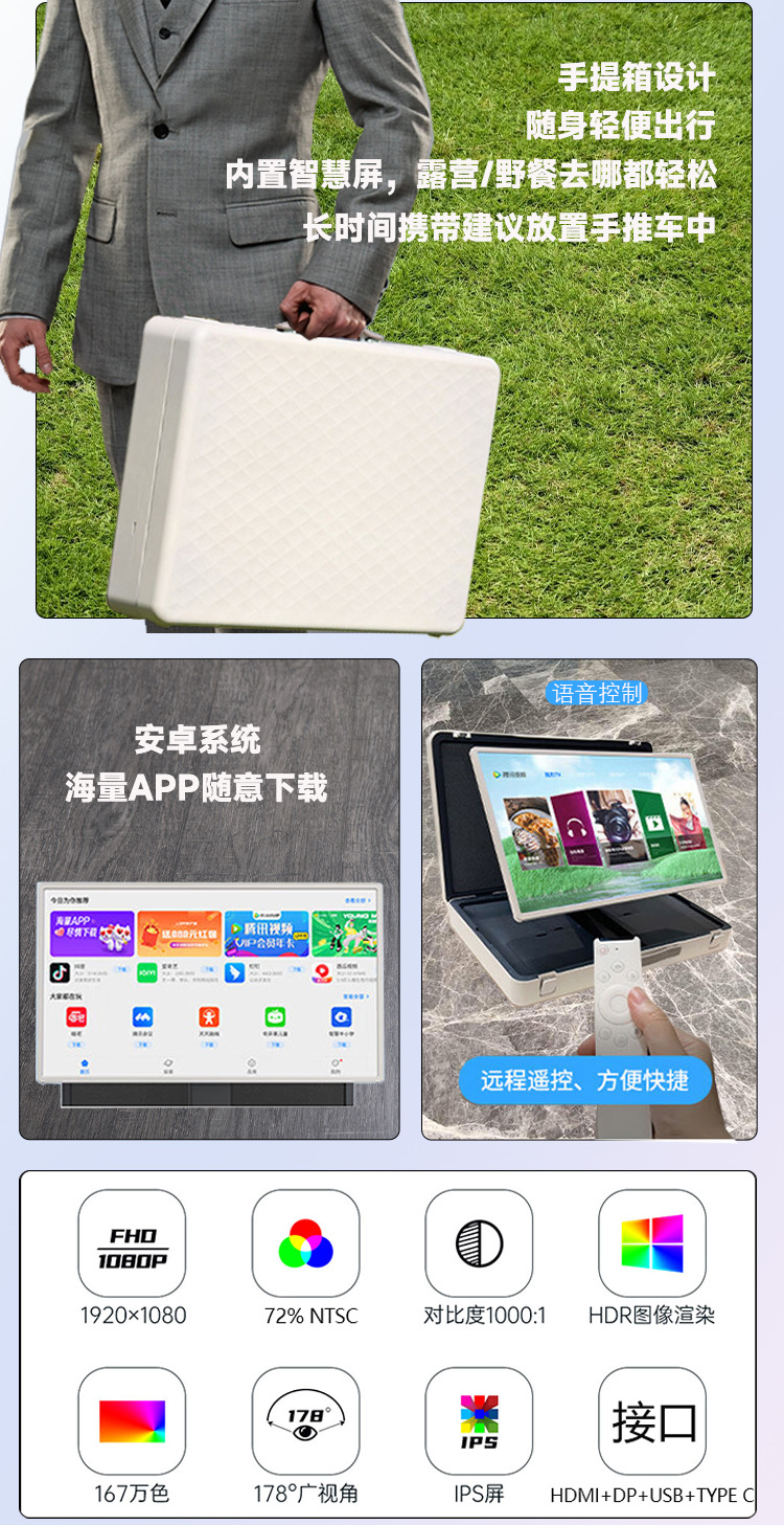 27inch 국경 간 뜨거운 판매 휴대용 안드로이드 터치 디스플레이 LED bestie 스크린 서류 가방 가방 올인원스토어 가기