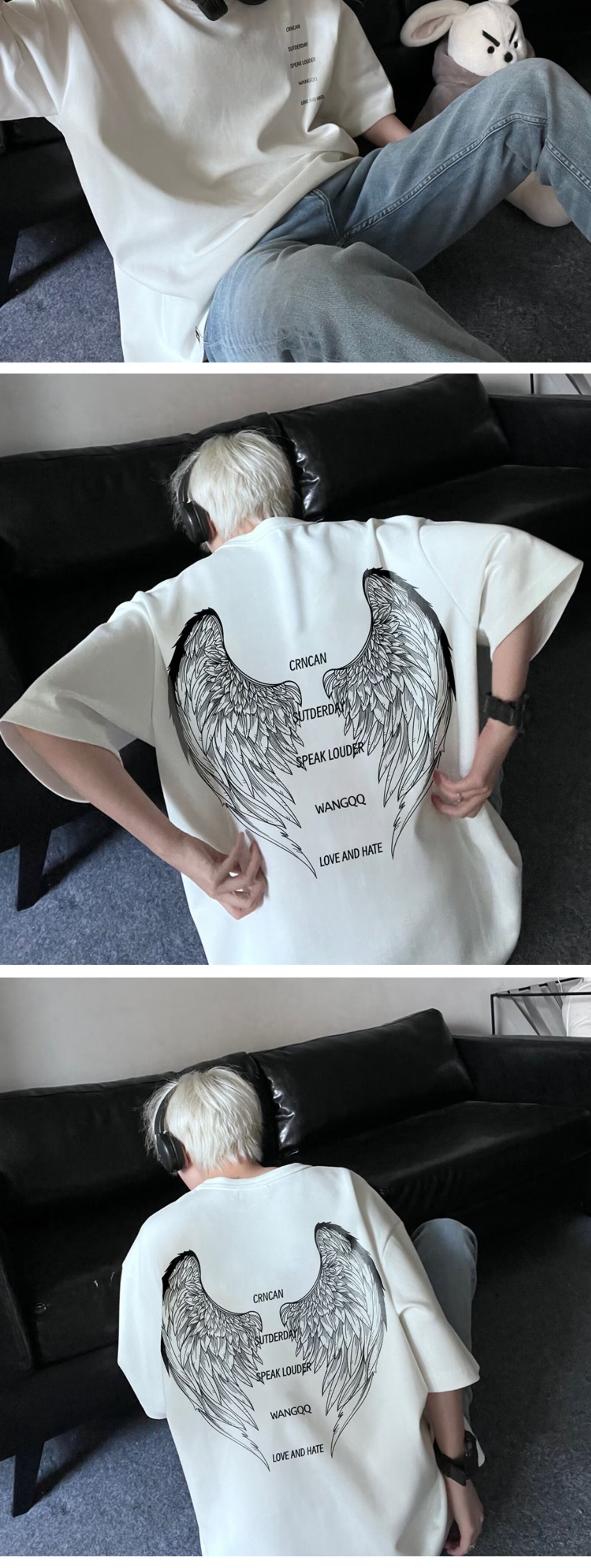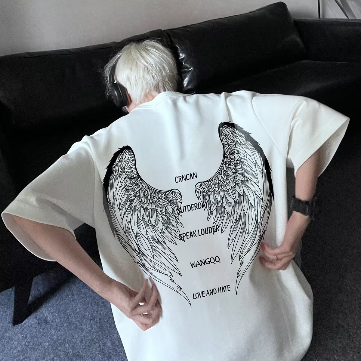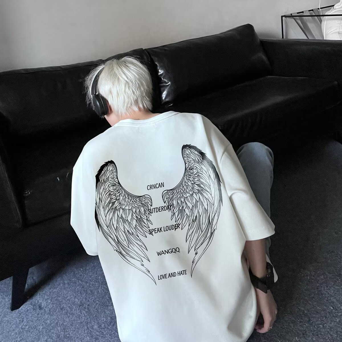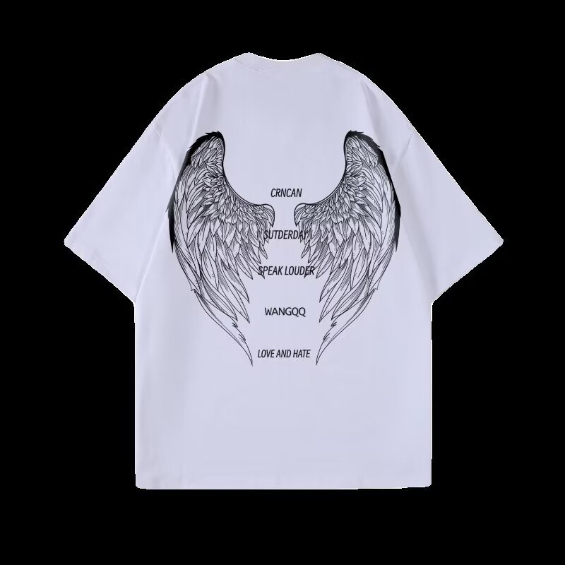 아메리칸 스타일 하이 스트리트 윙 반팔 티셔츠 남성용 패션 여름 플러스 사이즈 루즈 디자인 틈새 반소매 커플 탑
