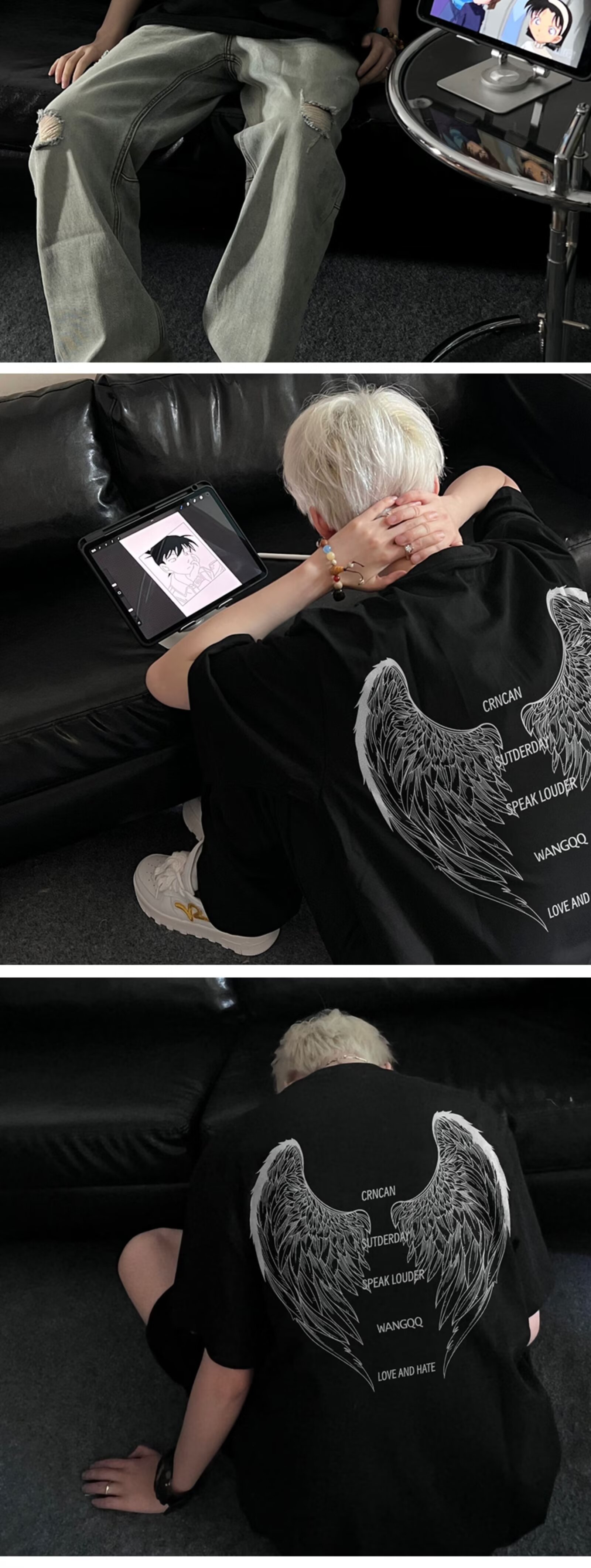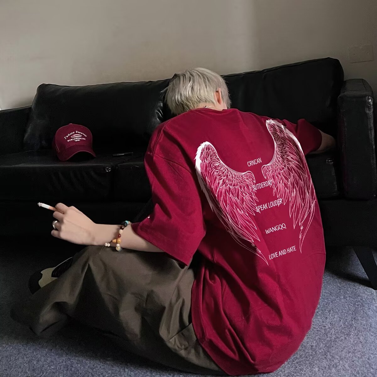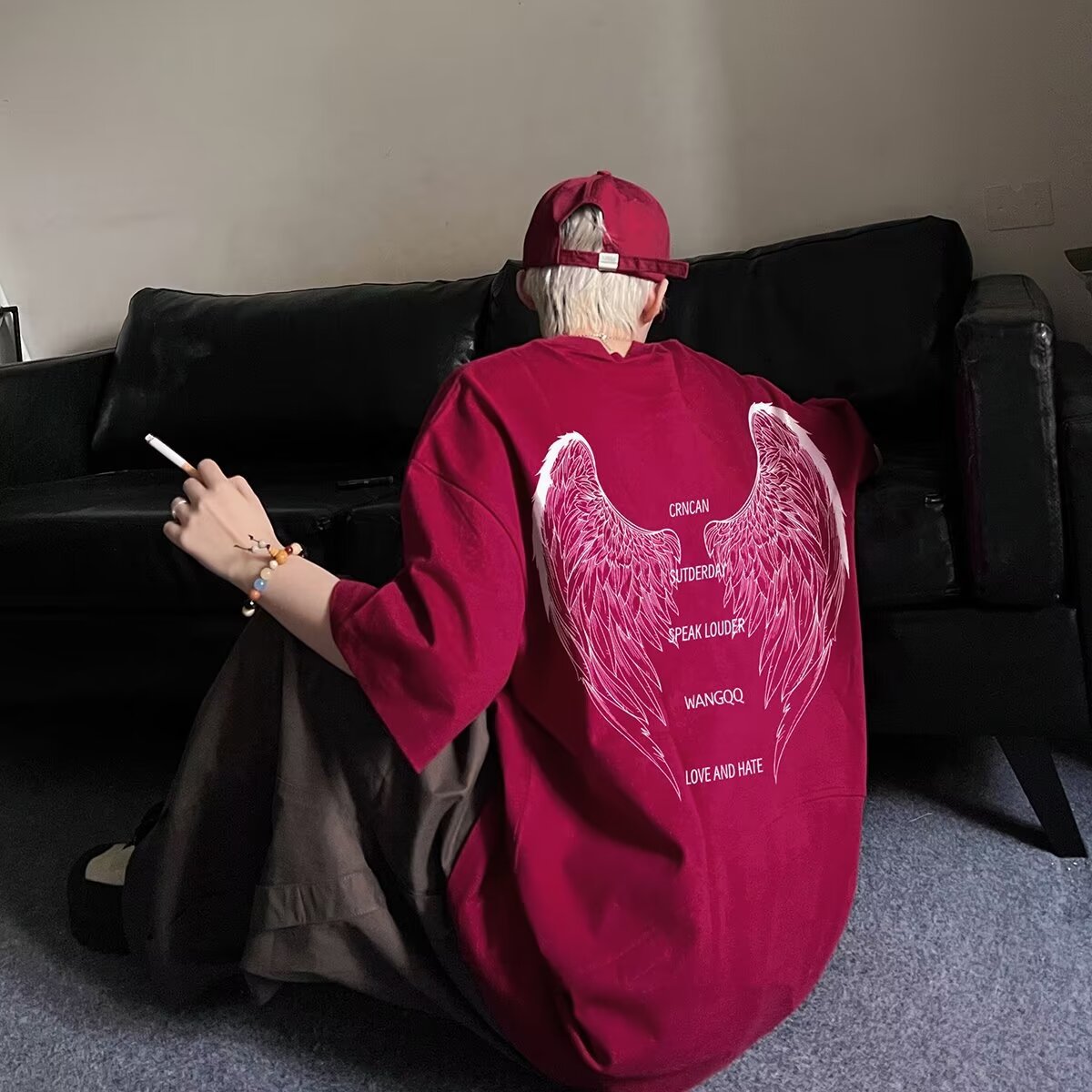 아메리칸 스타일 하이 스트리트 윙 반팔 티셔츠 남성용 패션 여름 플러스 사이즈 루즈 디자인 틈새 반소매 커플 탑
