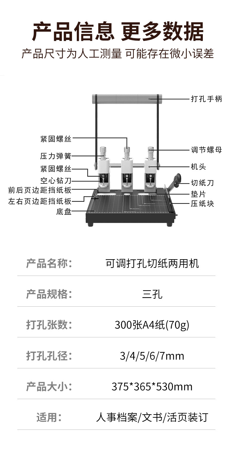 Sanyi 파일 인사 파일 특수 펀치 기계 종이 절단 펀치 바인딩 특수 조정 가능한 구멍 거리 3 구멍 펀칭 기계