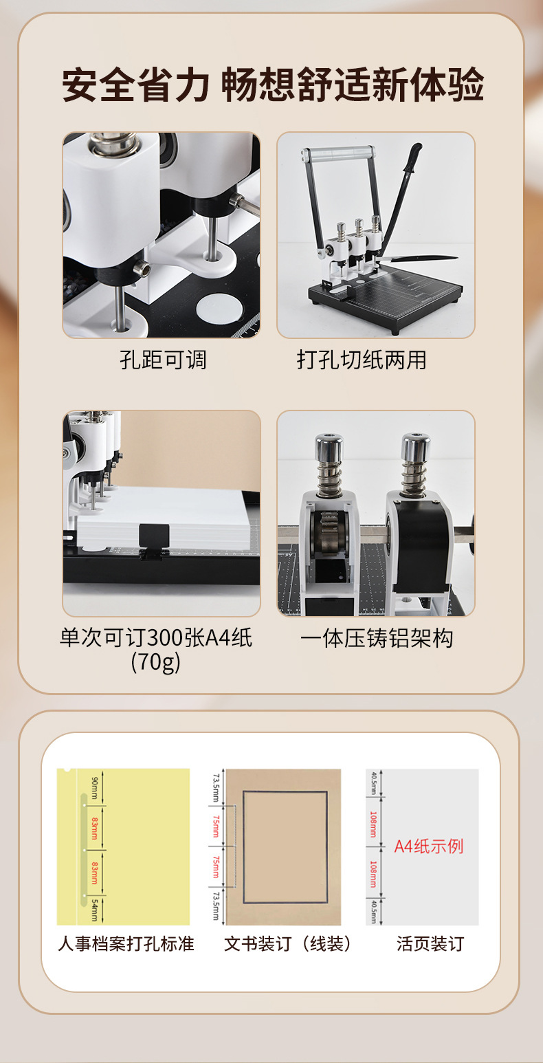 Sanyi 파일 인사 파일 특수 펀치 기계 종이 절단 펀치 바인딩 특수 조정 가능한 구멍 거리 3 구멍 펀칭 기계스토어 가기