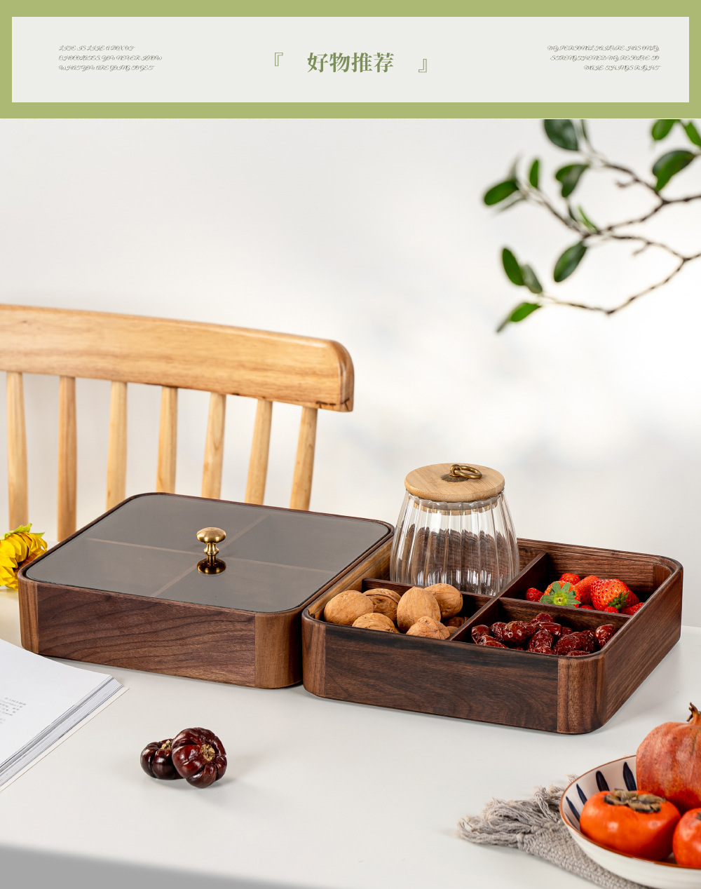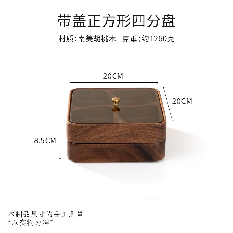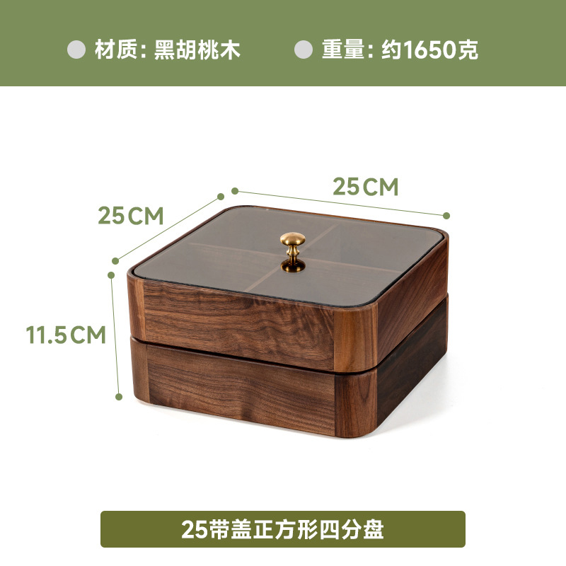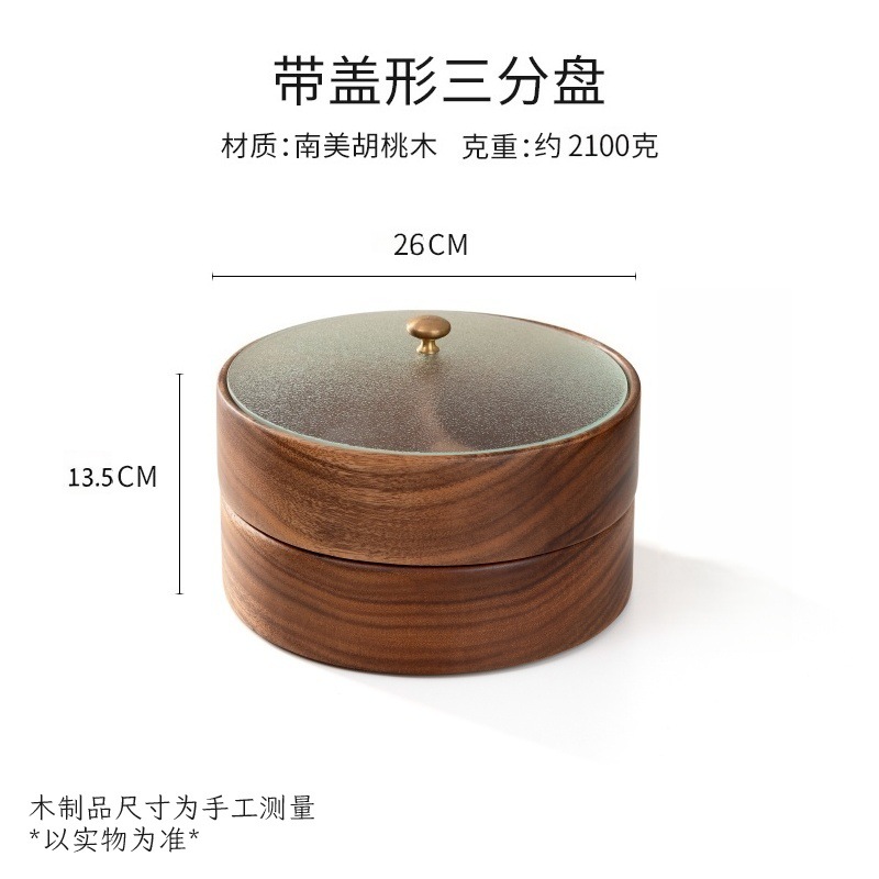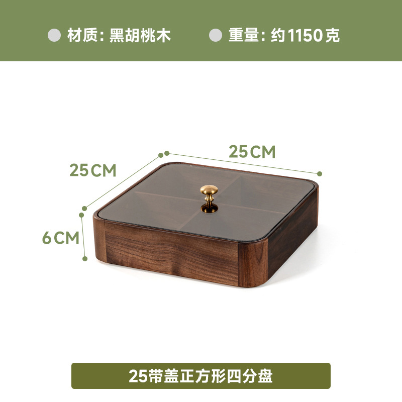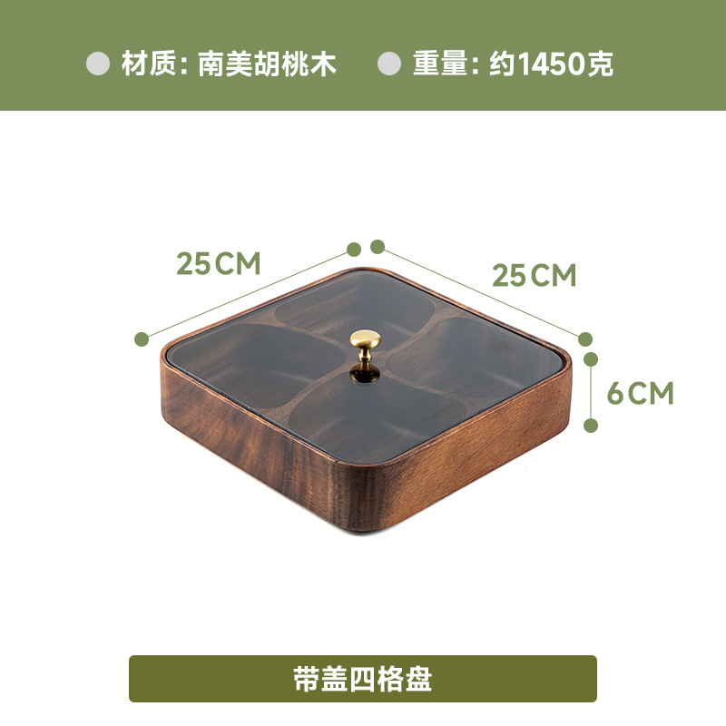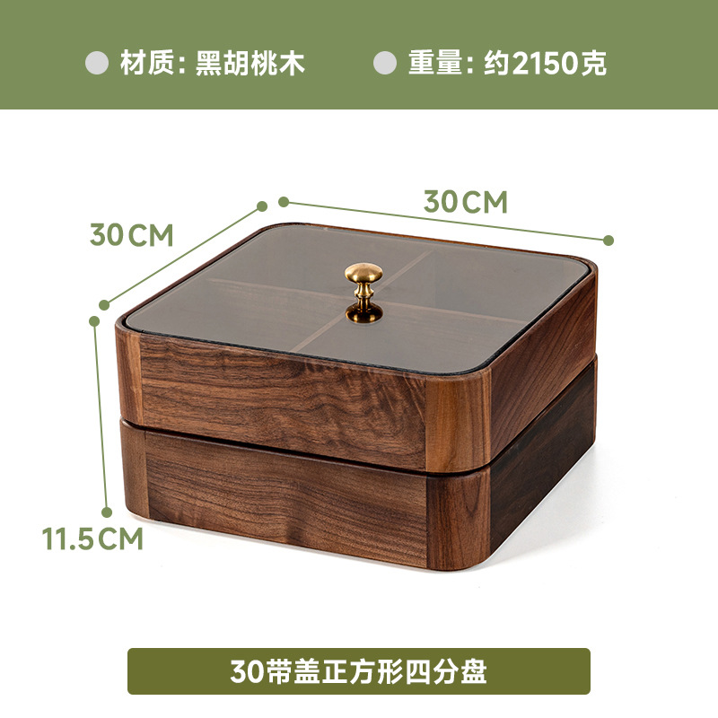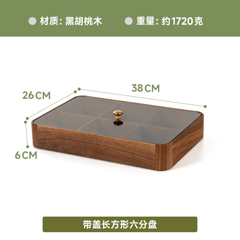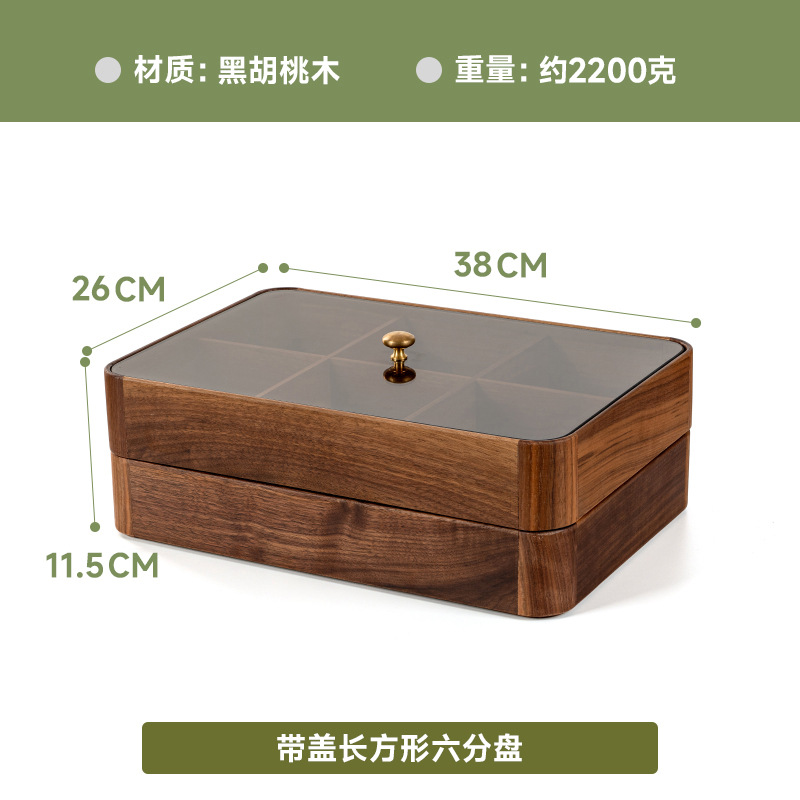 검은 호두 더블 레이어 말린 과일 상자 유리 뚜껑 단단한 나무 거실 간단한 새로운 중국 사탕 트레이 저장 상자 도매스토어 가기