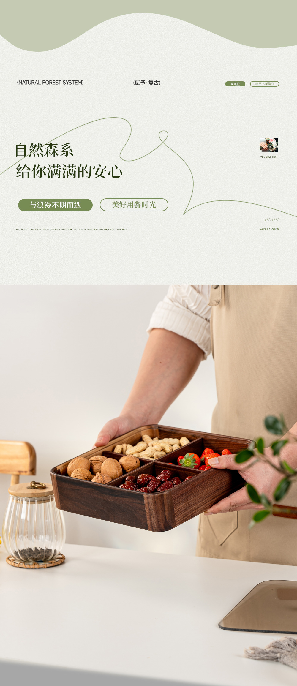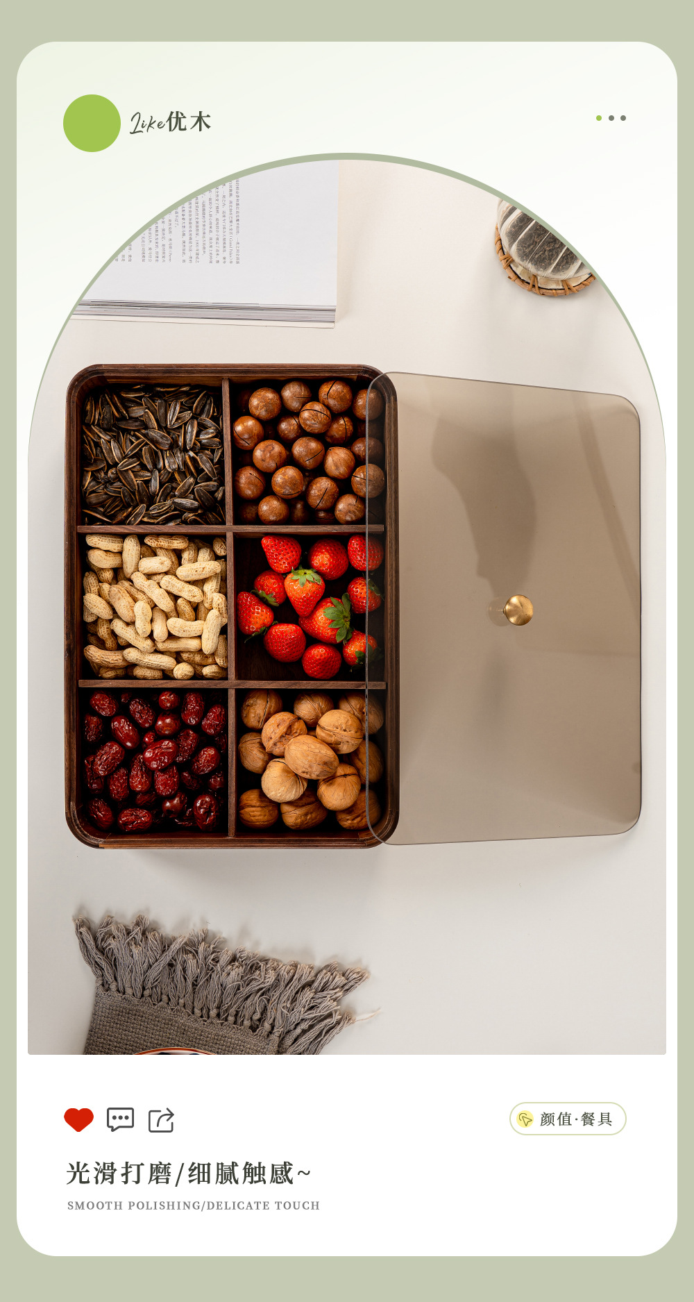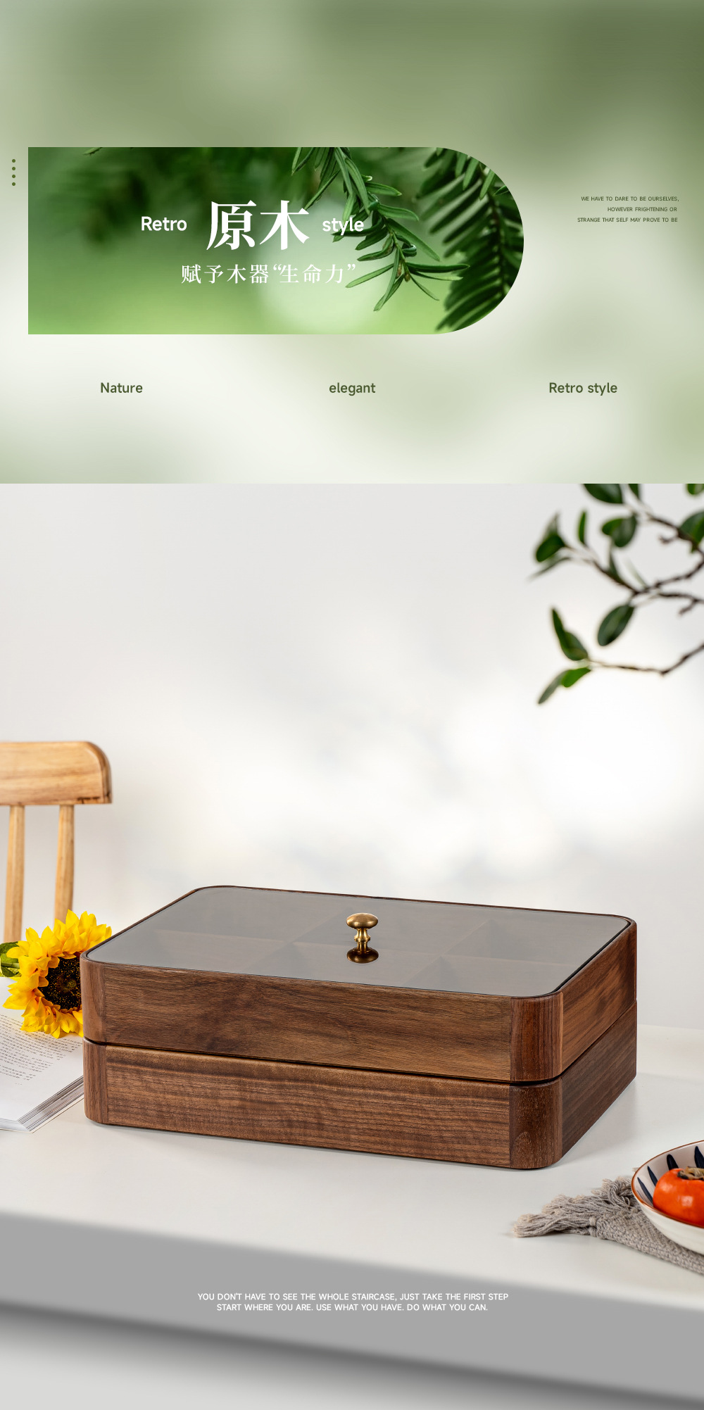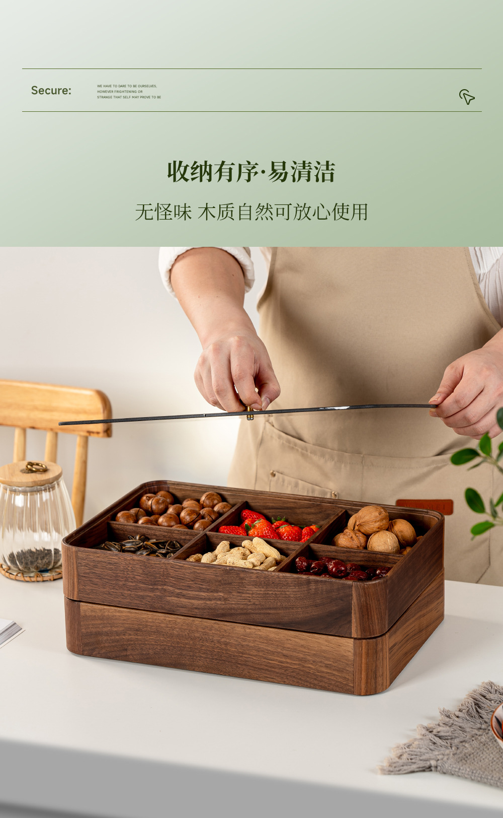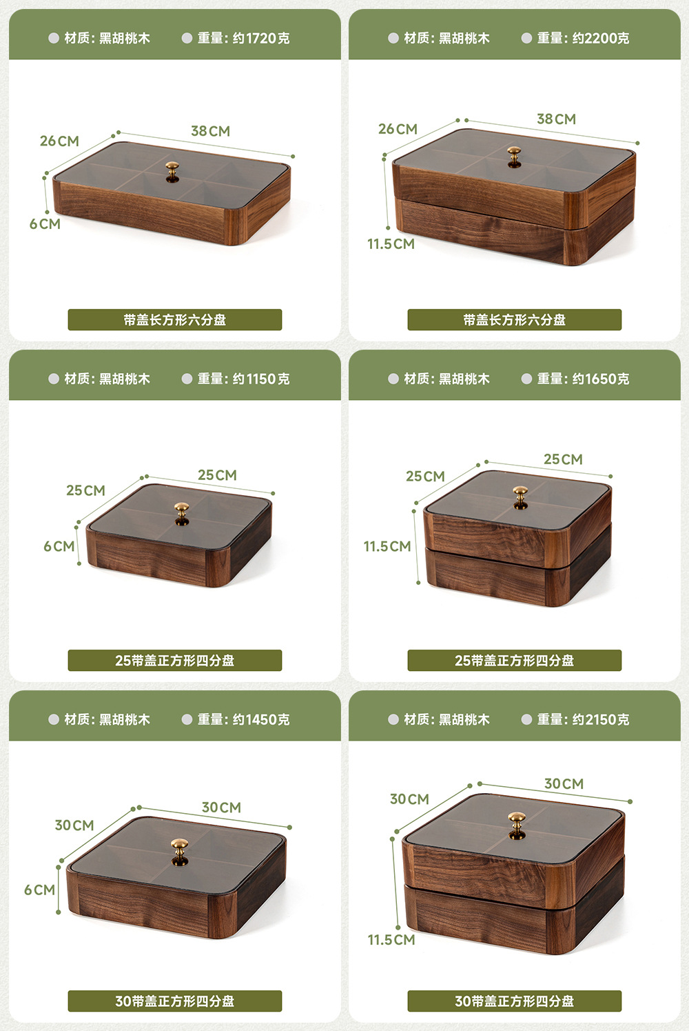 검은 호두 더블 레이어 말린 과일 상자 유리 뚜껑 단단한 나무 거실 간단한 새로운 중국 사탕 트레이 저장 상자 도매스토어 가기