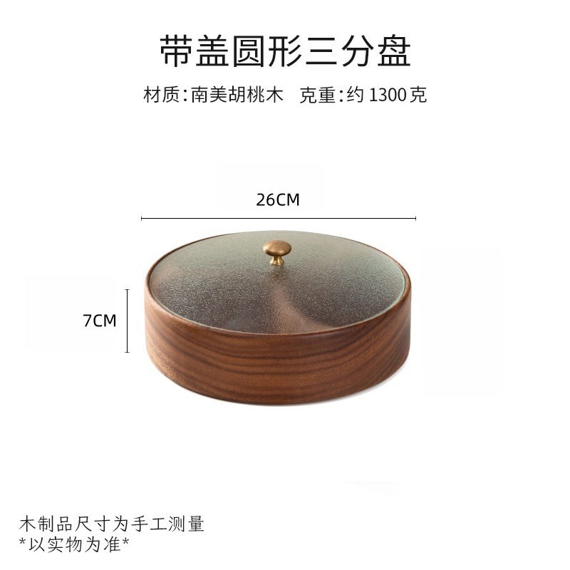 • 호두나무 과일 바구니 원형 3칸 26cm