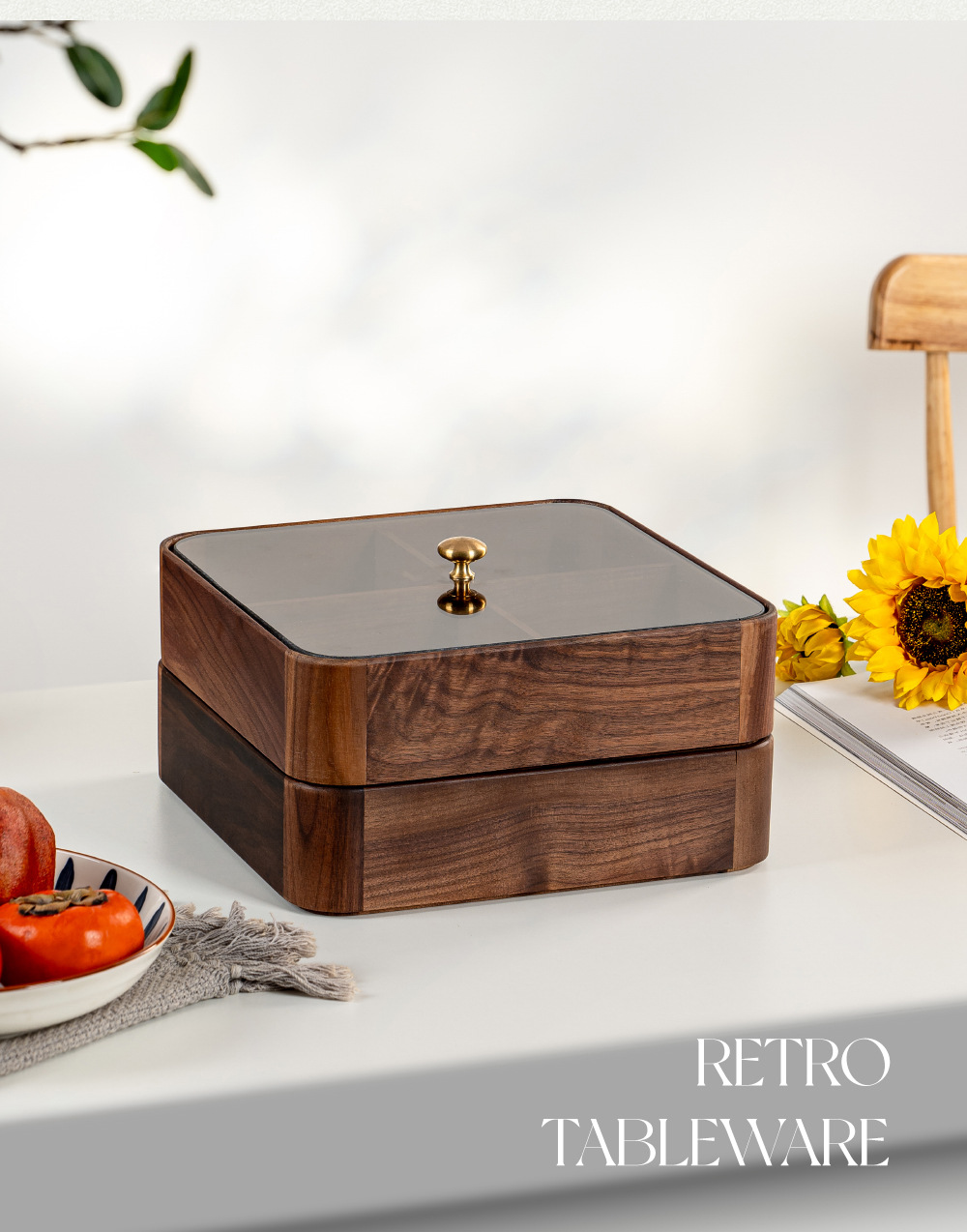 • 4개의 칸이 있는 이중층 검은 호두 과일 상자 25CM
