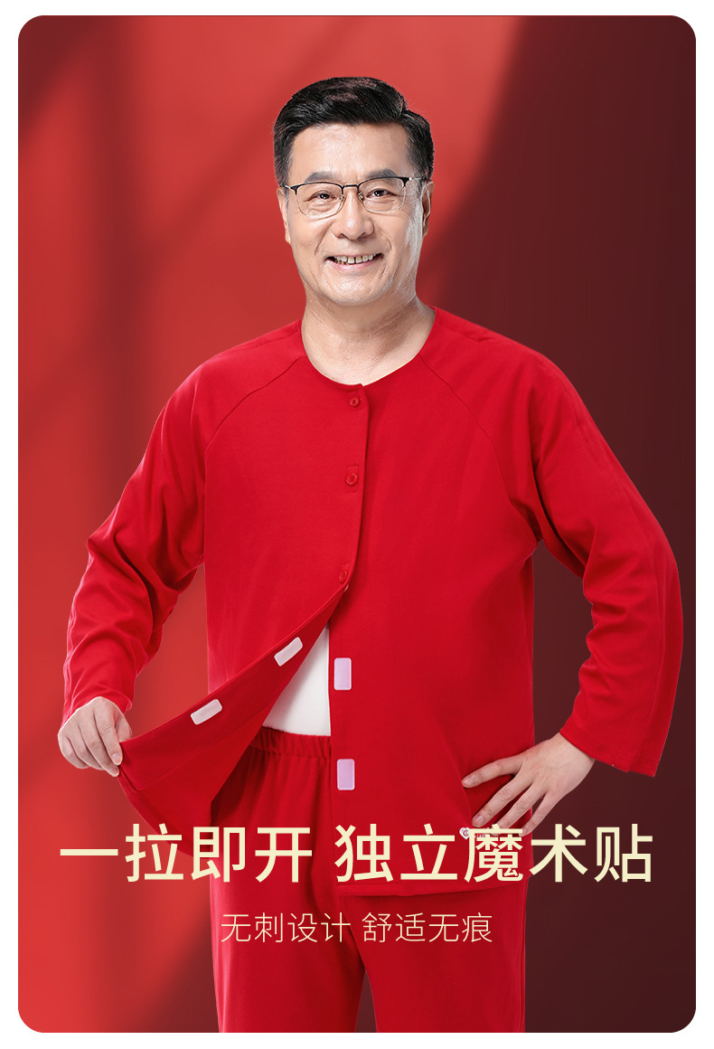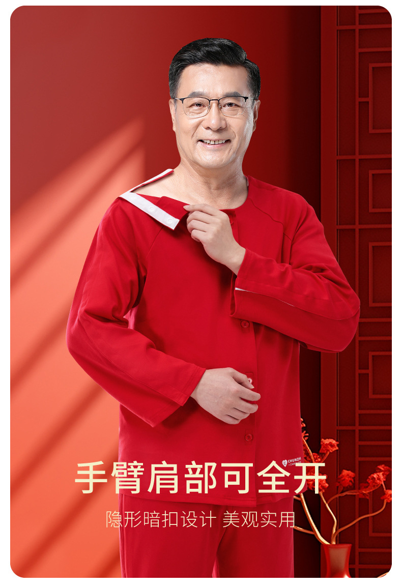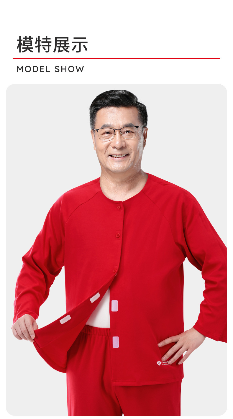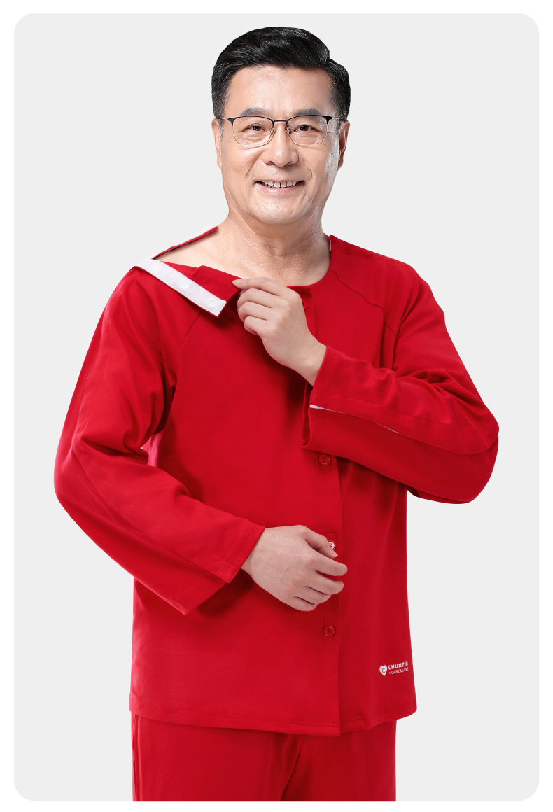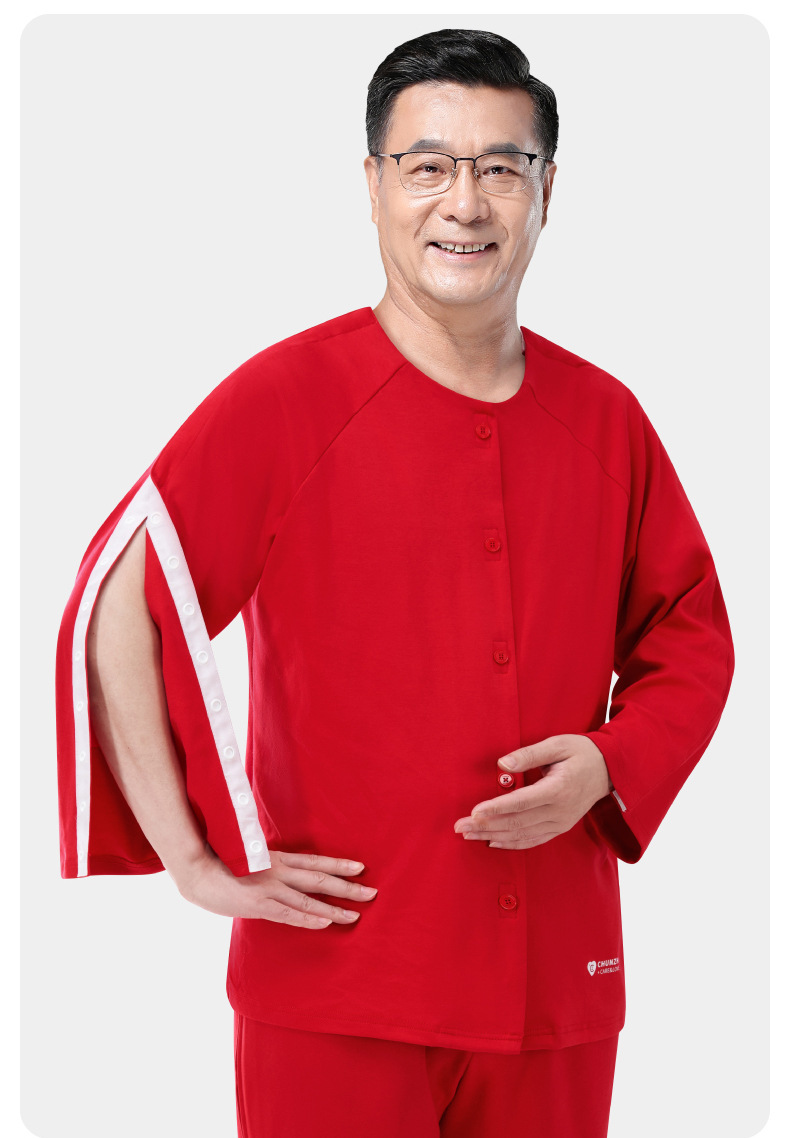 봄 직조 자연 년 순면 가을과 겨울 두껍게 입고 벗고 간호 의류 골절 수술 후 회복 Picc 튜브 남성용 파자마스토어 가기