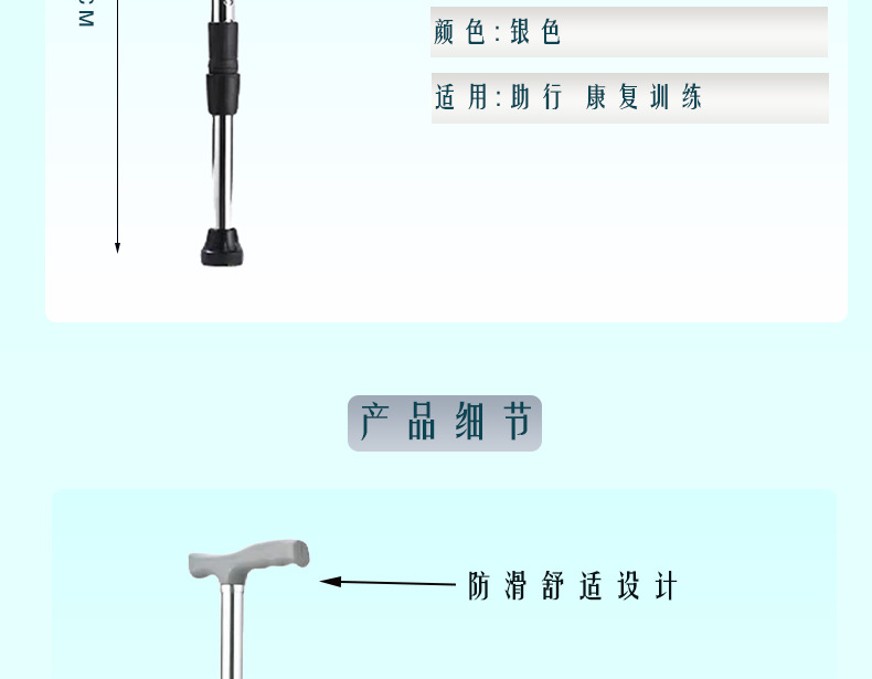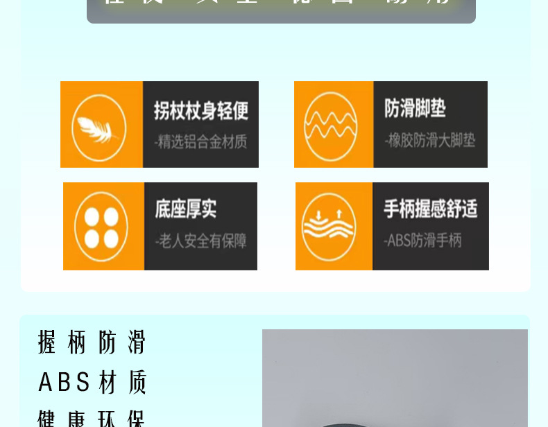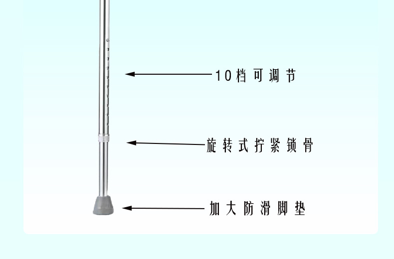 노인을위한 알루미늄 합금 지팡이는 등산을 위해 안정적이고 미끄러지지 않는 조절 가능한 목발입니다.