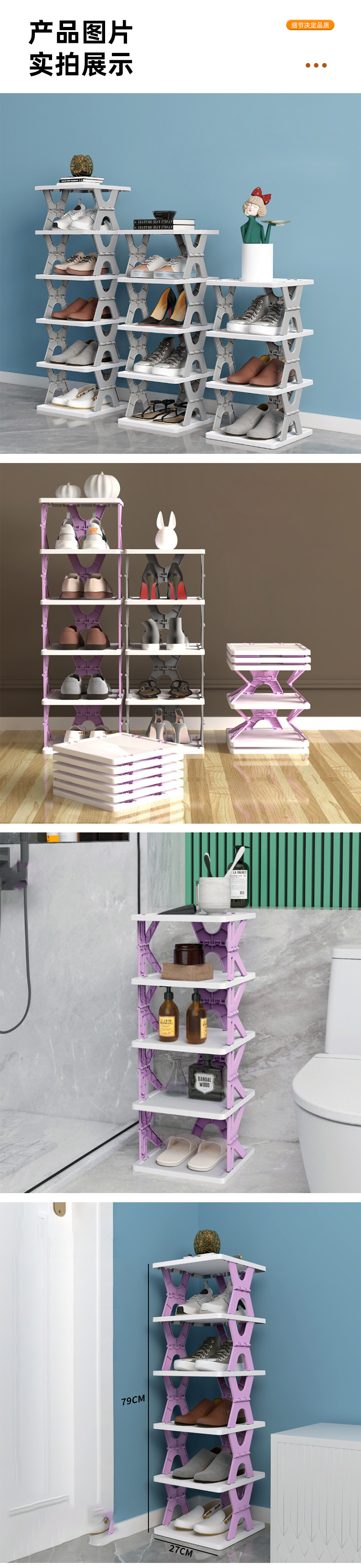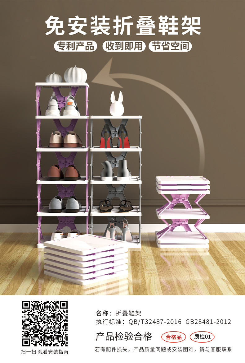K형 방진 접이식 무설치 신발장 가정용 실내 방 수납 접이식 X형 무타공