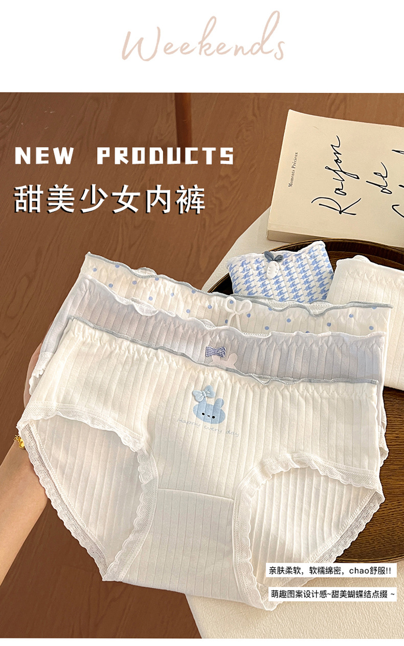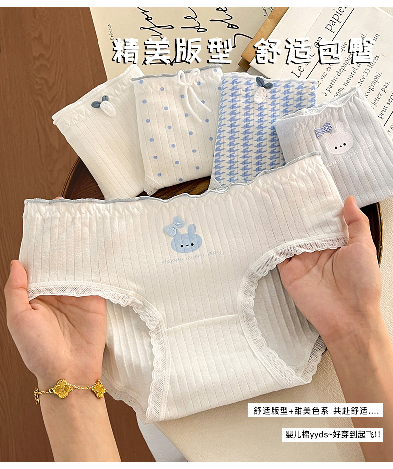달콤하고 귀여운 토끼 소녀 속옷 통기성 A 등급 항균 클래스 A 100% 면 가랑이 중간 허리 여성용 팬티스토어 가기