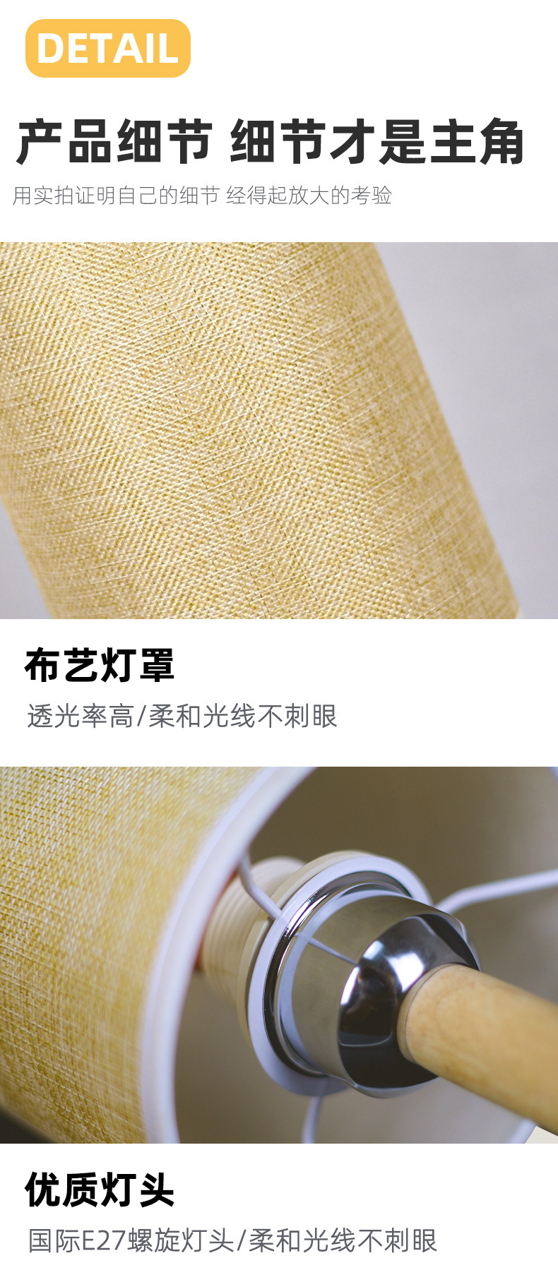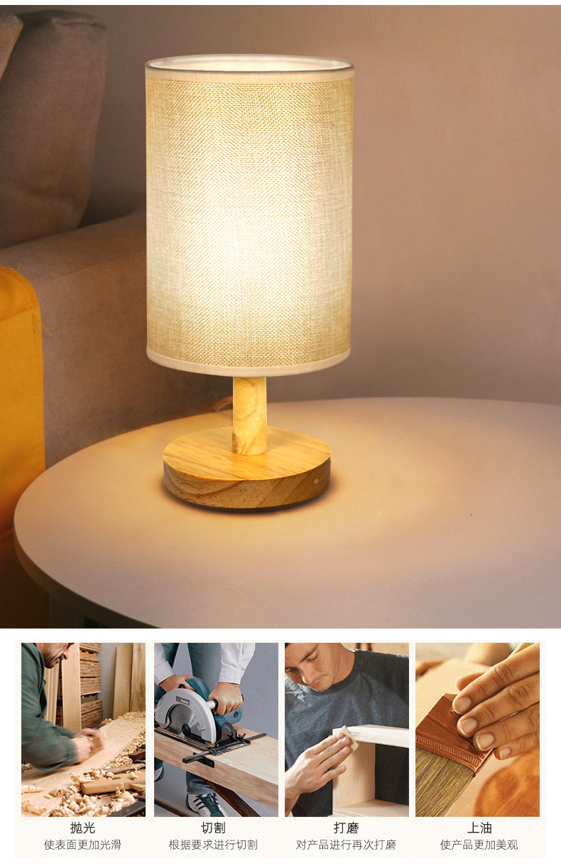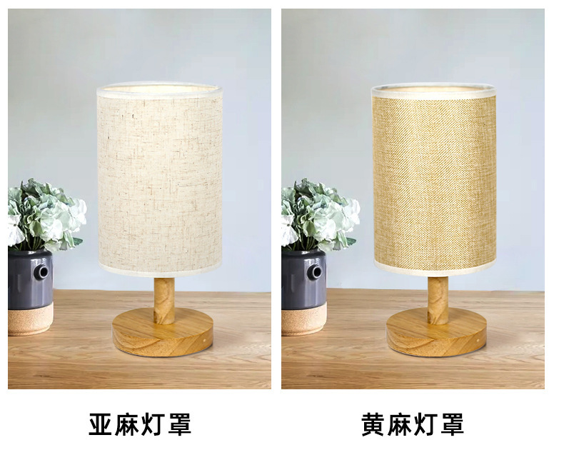 단단한 나무 테이블 램프 나이트 라이트 USB 리넨 황마 색 침대 옆 램프 호텔과 홈스테이를 위한 간단한 복고풍 테이블 램프스토어 가기