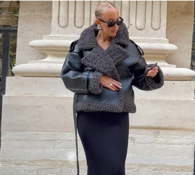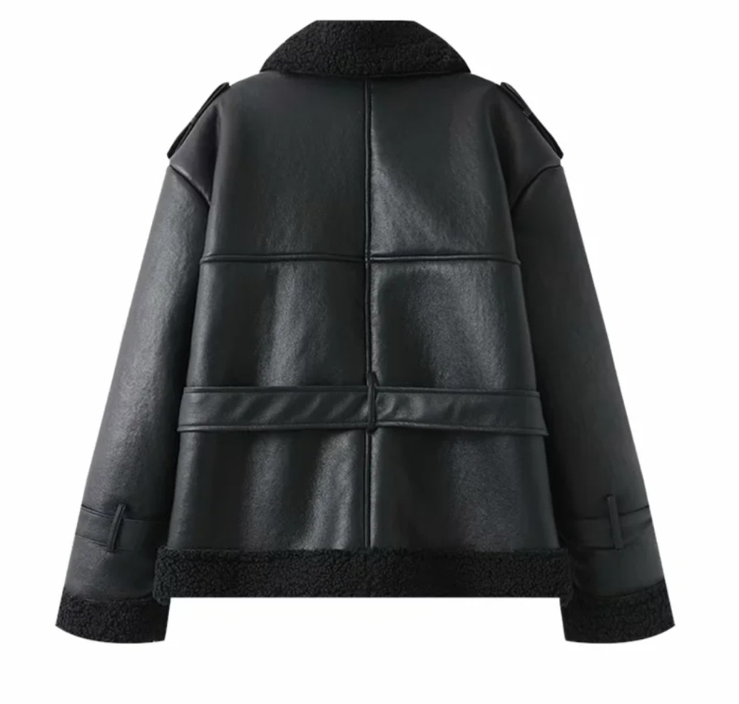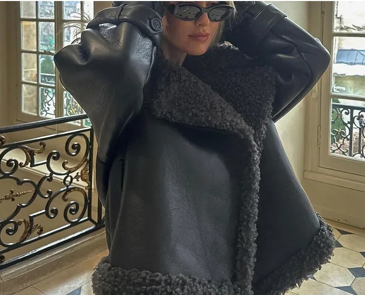 국경 간 유럽과 미국 여성의 AliExpress 폭발 PU 벨트 벨트 모피 한 재킷 코트