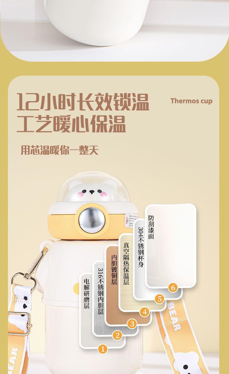 유치원 소년 소녀 겨울 밀짚 컵 학생 남성 식품 학년 어린이 보온병 컵 무료 배송