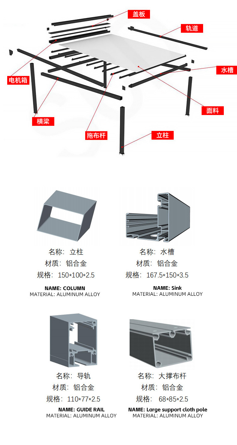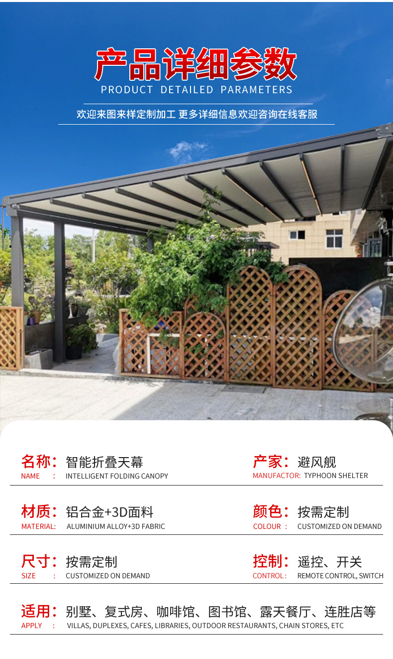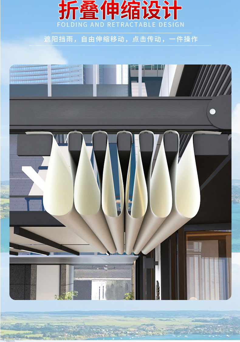 전동 접이식 차양막 방수 레인 캐노피 정원 테라스 차양 알루미늄 프레임 폭우 방지