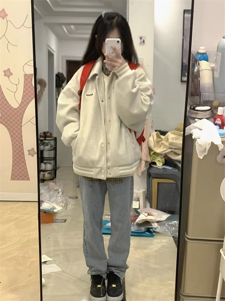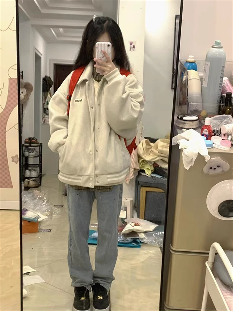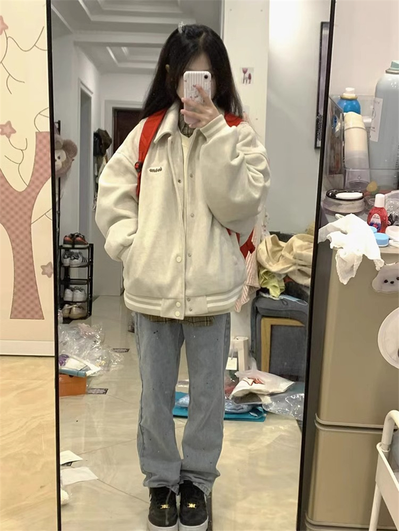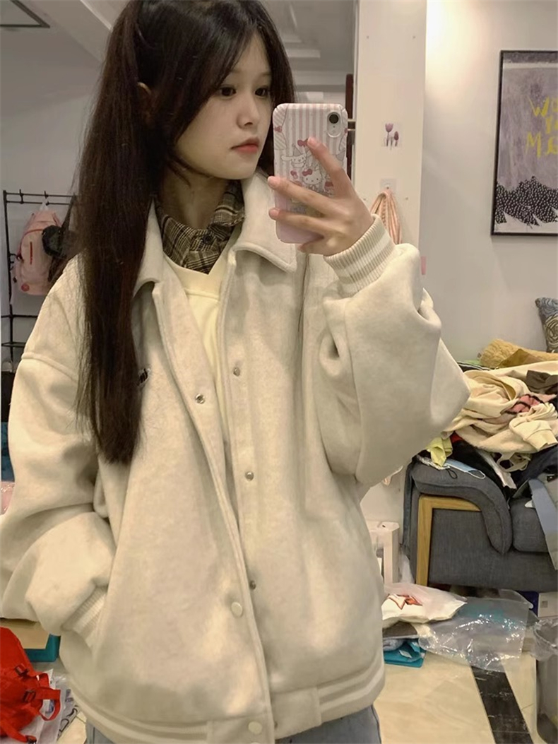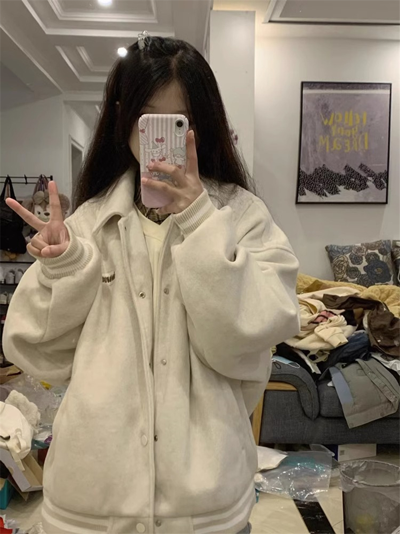 아메리칸 스타일 레트로 야구 세트 코트 여자 2024 새로운 가을과 겨울 느슨한 캐주얼 재킷 스웨터 카디건 탑스토어 가기