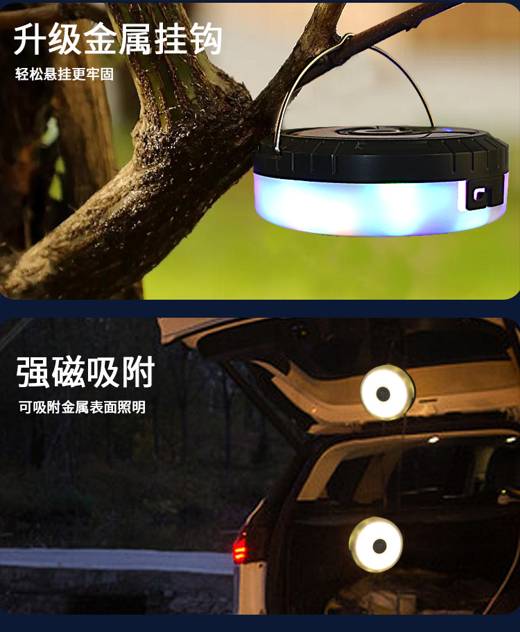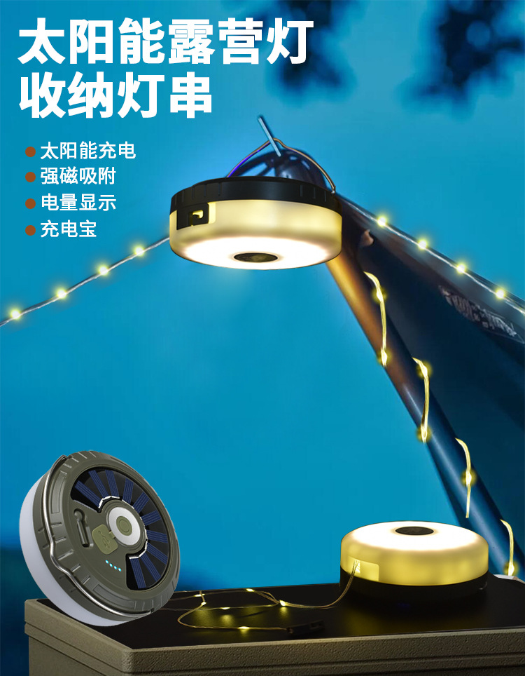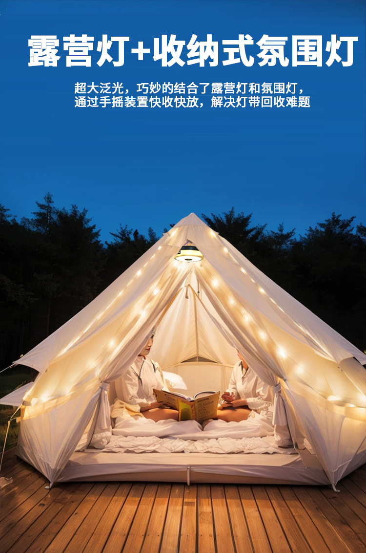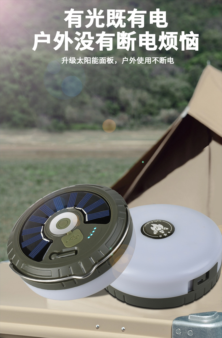 국경 간 새로운 태양 캠핑 조명 다채로운 문자열 조명 충전 야외 분위기 조명 캠핑 텐트 조명