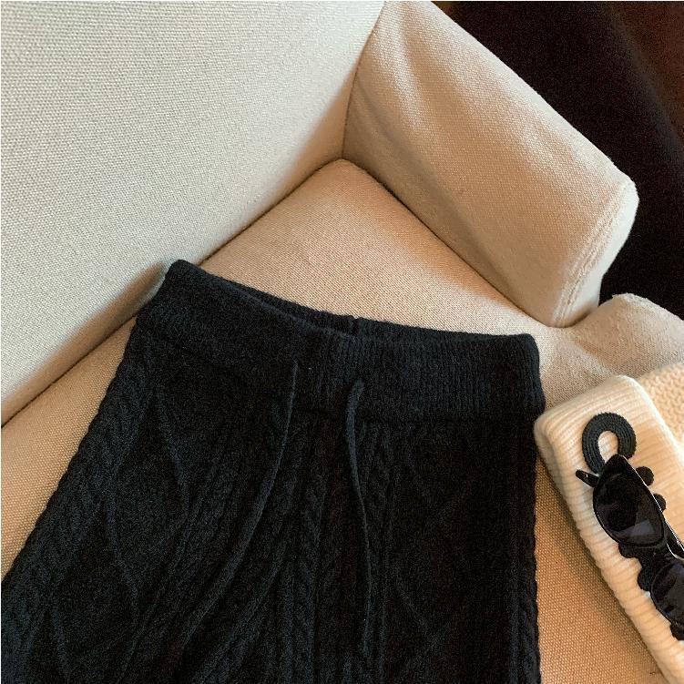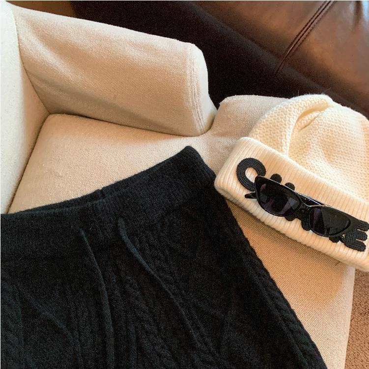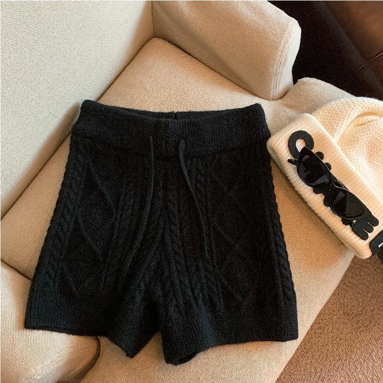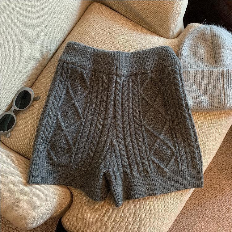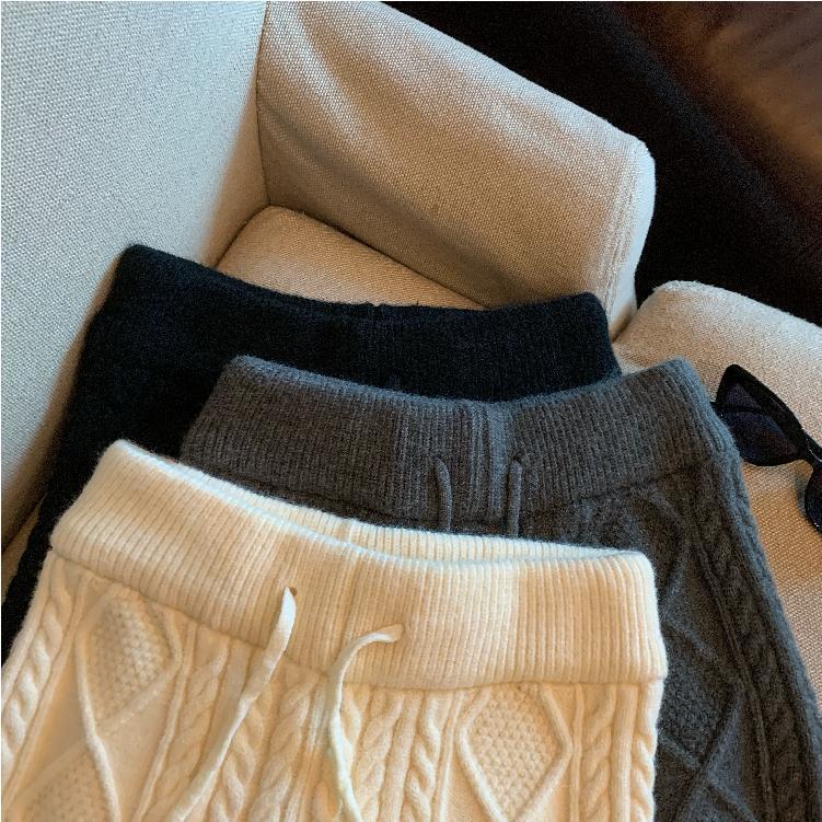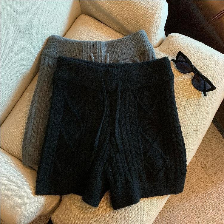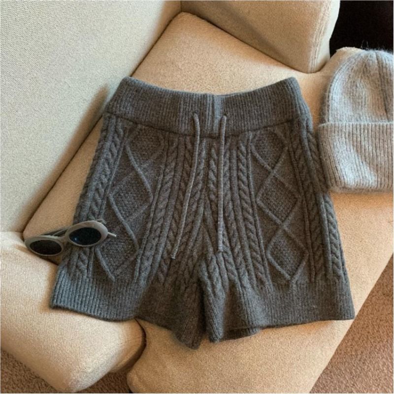 트위스트 니트 반바지 여성의 가을과 겨울 2024 새로운 스타일 작은 높은 허리 양모 넓은 다리 바지 외부 착용 레깅스스토어 가기