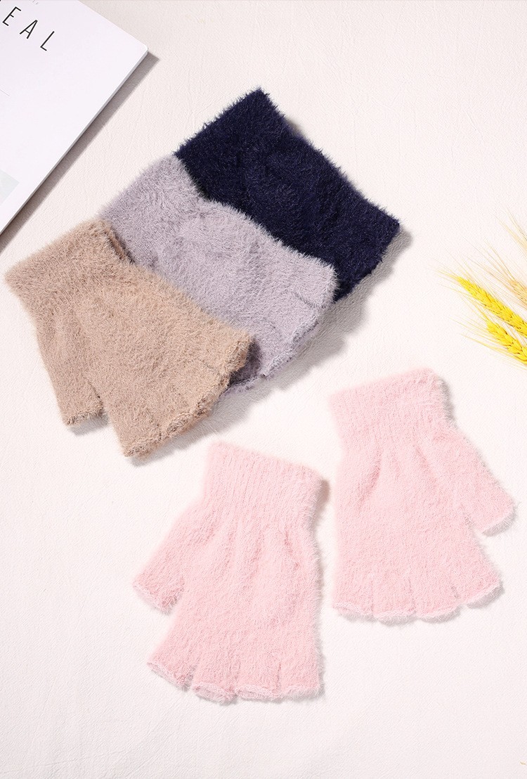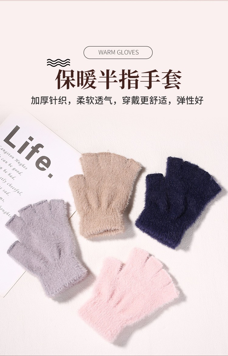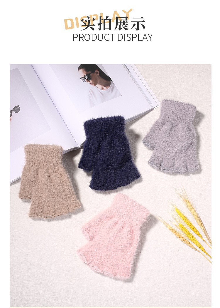새로운 겨울 장갑 두 손가락 반 손가락 없는 터치 스크린 자카드 플러시 따뜻한 장갑 두 반 손가락이 있는 니트 두꺼운 학생 스타일스토어 가기