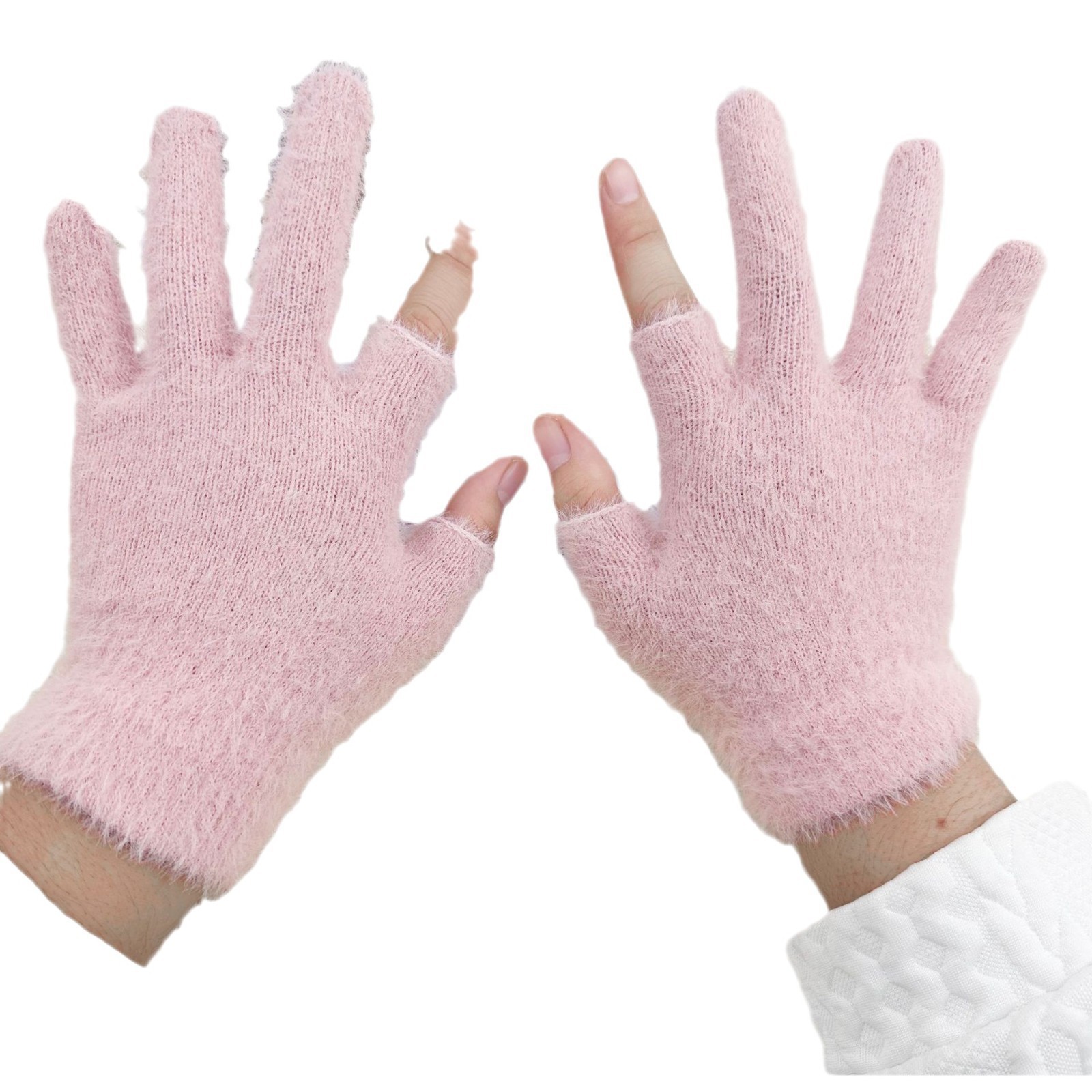 새로운 겨울 장갑 두 손가락 반 손가락 없는 터치 스크린 자카드 플러시 따뜻한 장갑 두 반 손가락이 있는 니트 두꺼운 학생 스타일