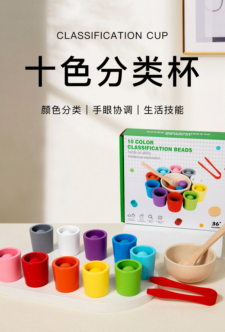 아기의 색상 분류 컵 몬테소리 조기 교육 완구인지 집중 미세 모터 훈련 보조