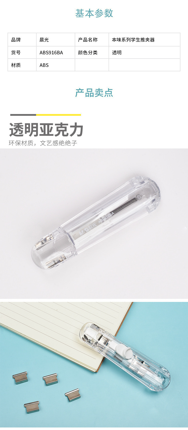 Chenguang 916BA 클립 푸셔 스테이플러 폴더 문구 고정 테스트 용지 아티팩트 없음 종이 청구서 펀칭 없음스토어 가기