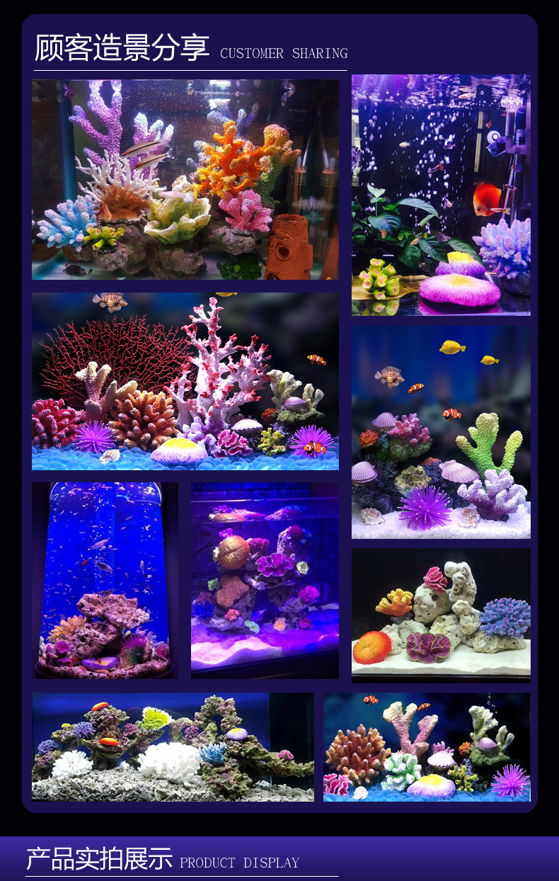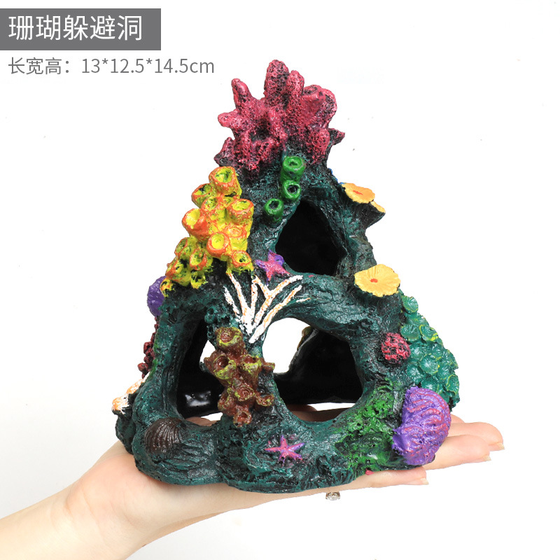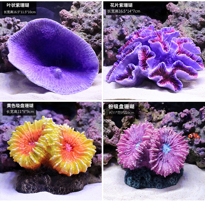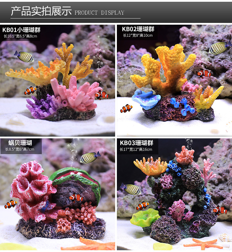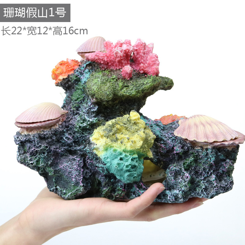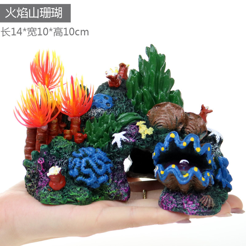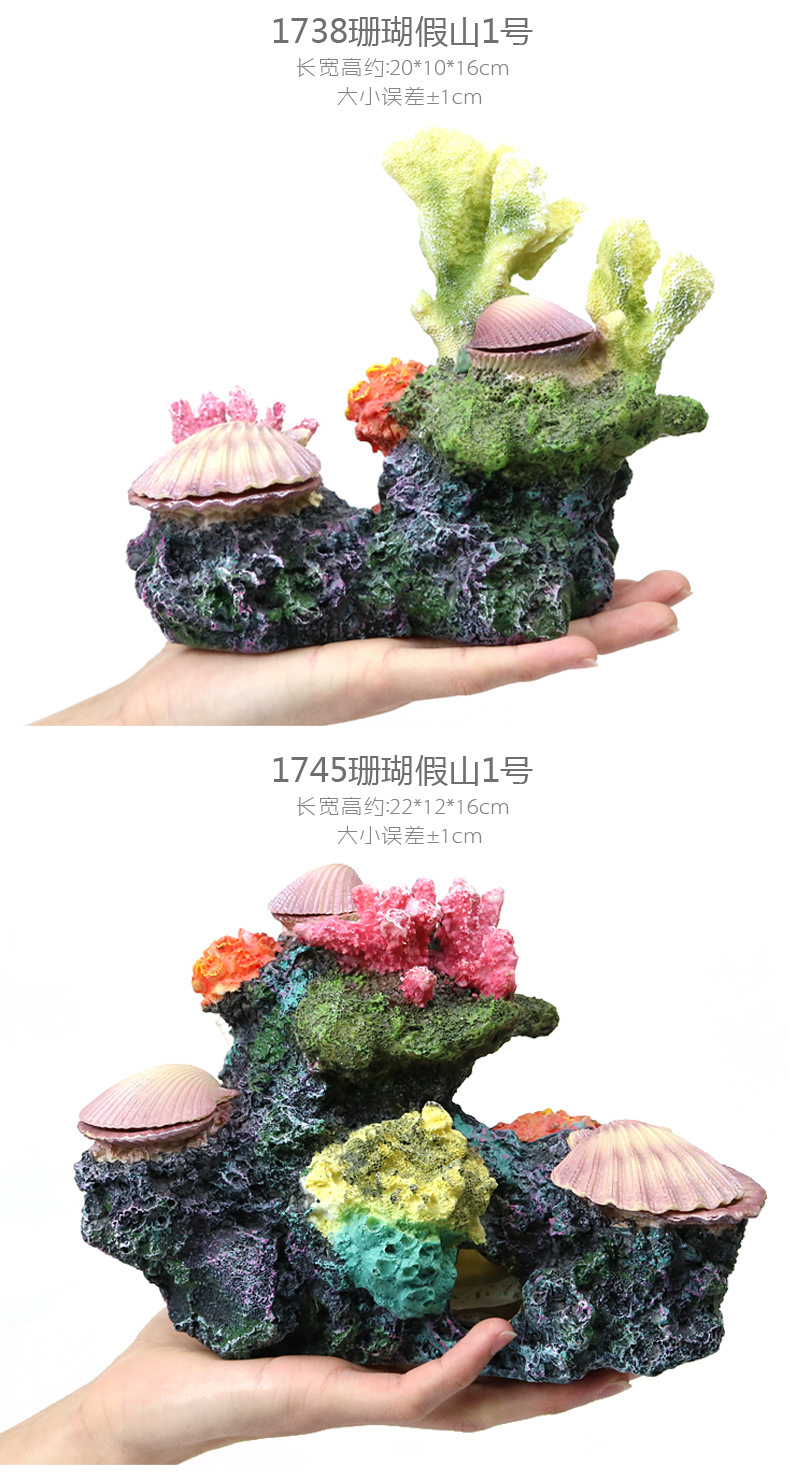 국경 간 수조, 수족관 조경, 산호, 바위, 조개, 시뮬레이션 가짜 수생 식물, 수조 장식 및 세트 공예스토어 가기