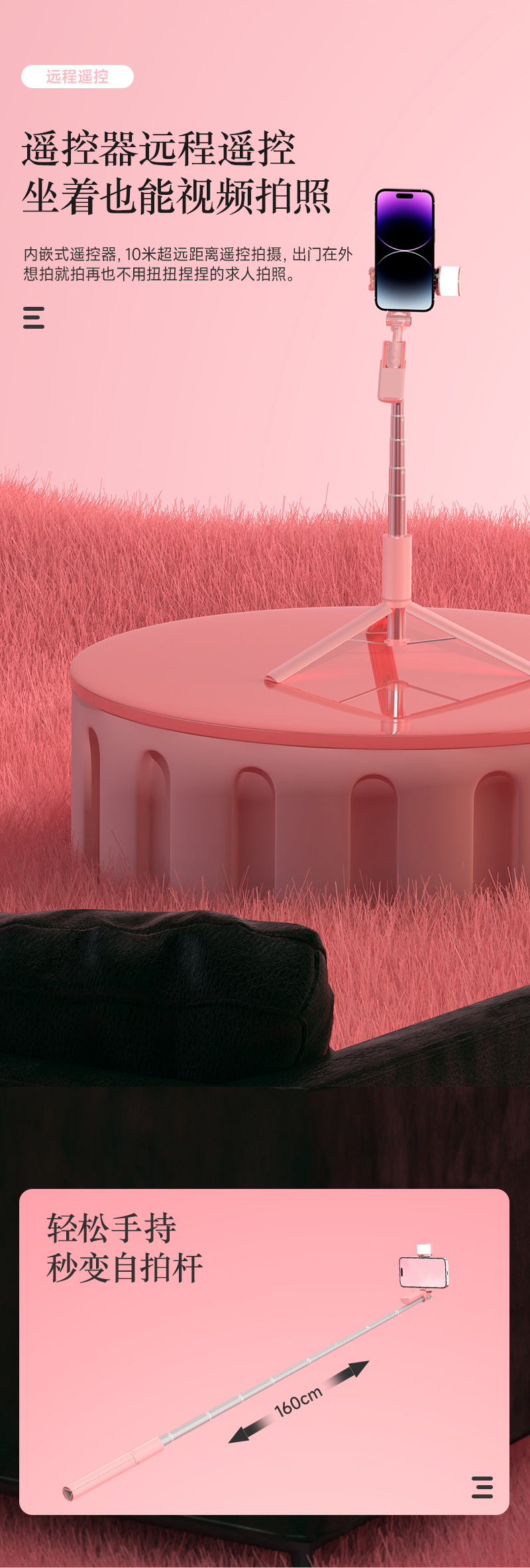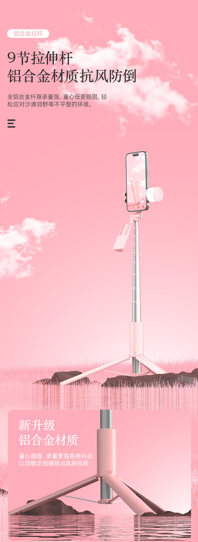 핑크 A900 블루투스 셀카 스틱 라이브 라이트 데스크탑 층 통합 삼각대 휴대 전화 슈팅 브래킷