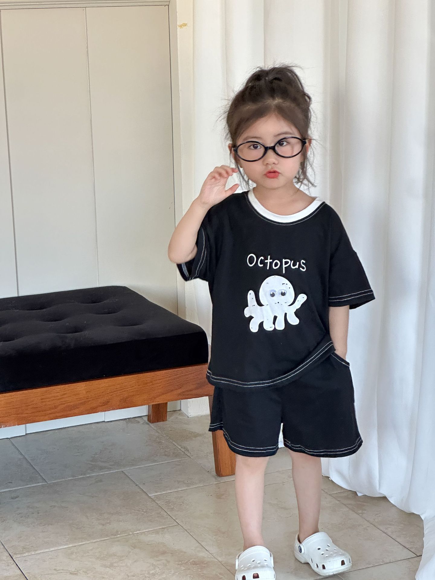 어린이 여름 스포츠 세트 코튼 걸스 느슨한 여름 2025 새 소년 캐주얼 반팔 아기 옷스토어 가기