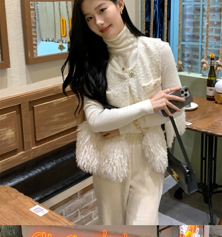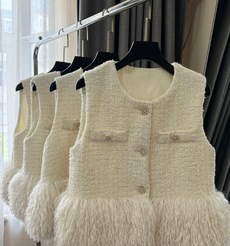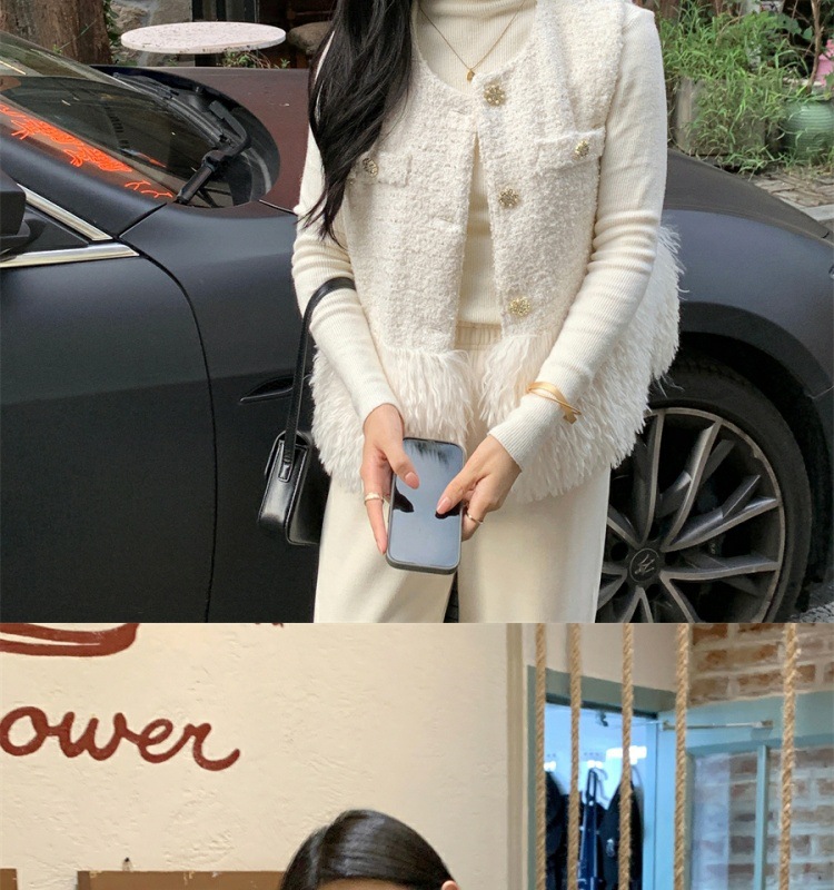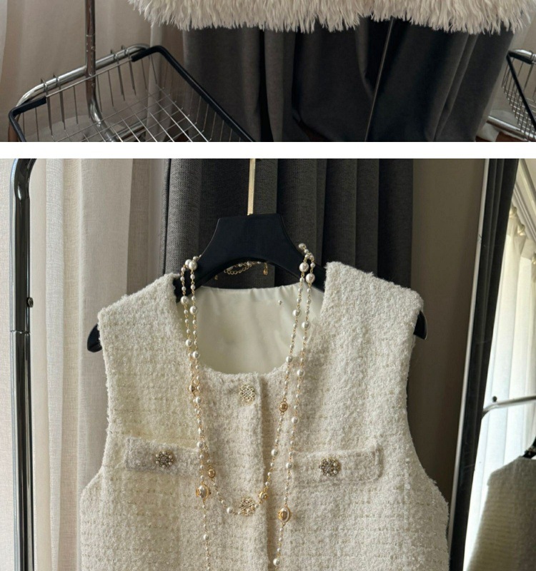 부드러운 백색 달빛 백색조 조끼 재킷 여성스러운 작은 향기 스타일 2024 가을 신상 패션 다용도스토어 가기
