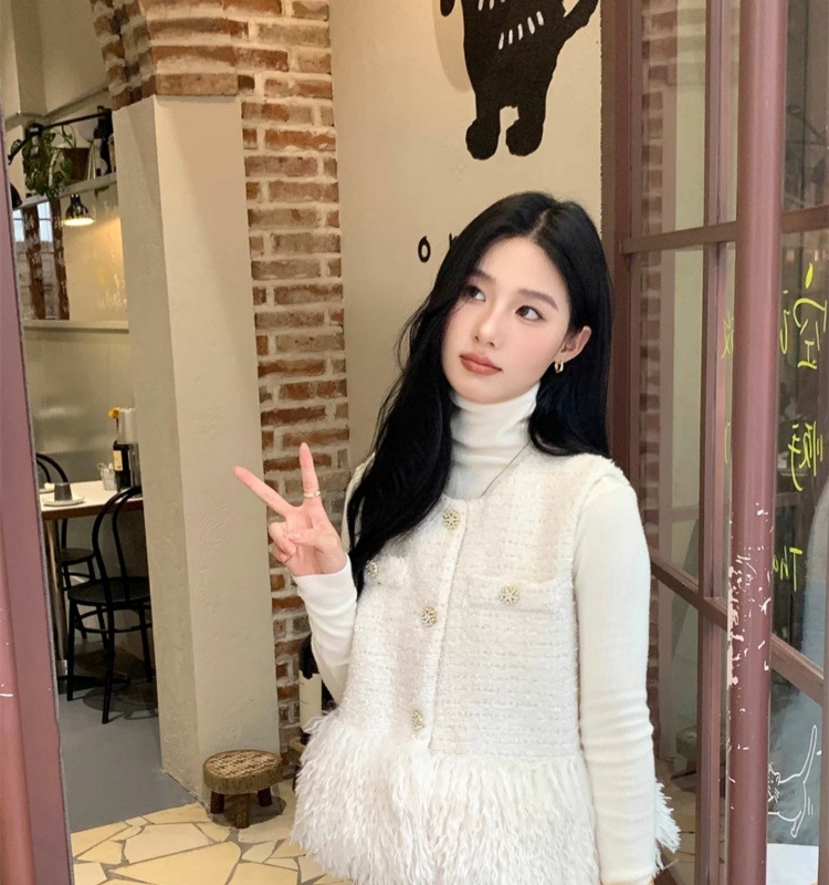부드러운 백색 달빛 백색조 조끼 재킷 여성스러운 작은 향기 스타일 2024 가을 신상 패션 다용도