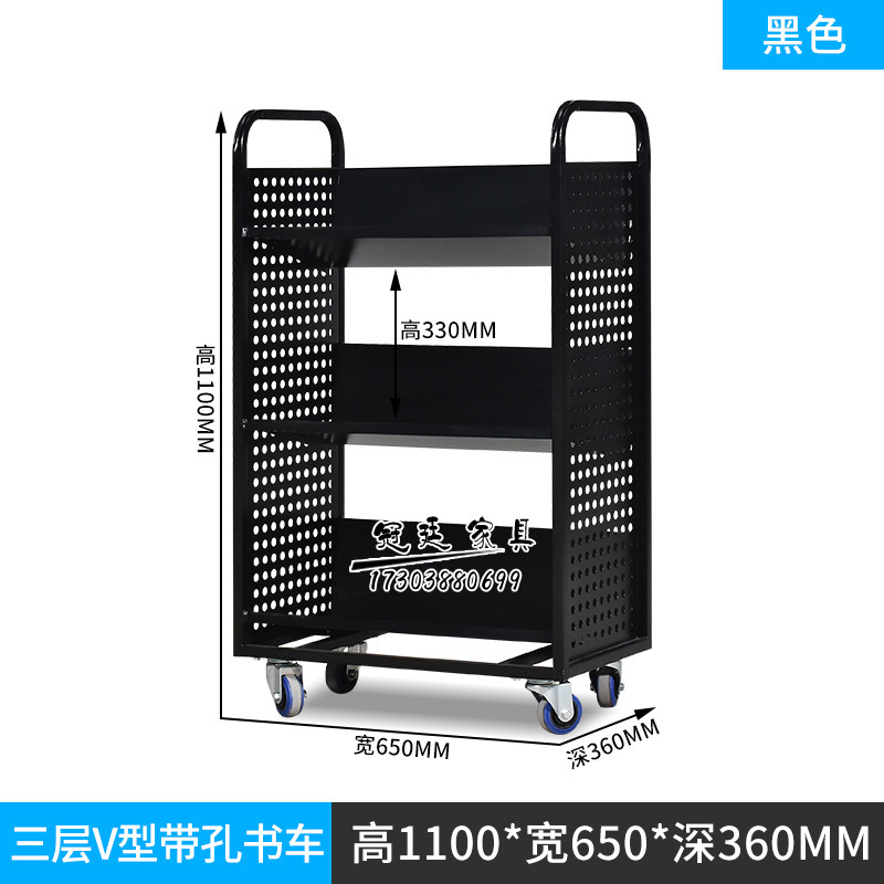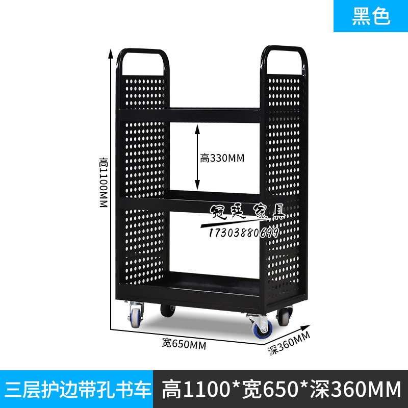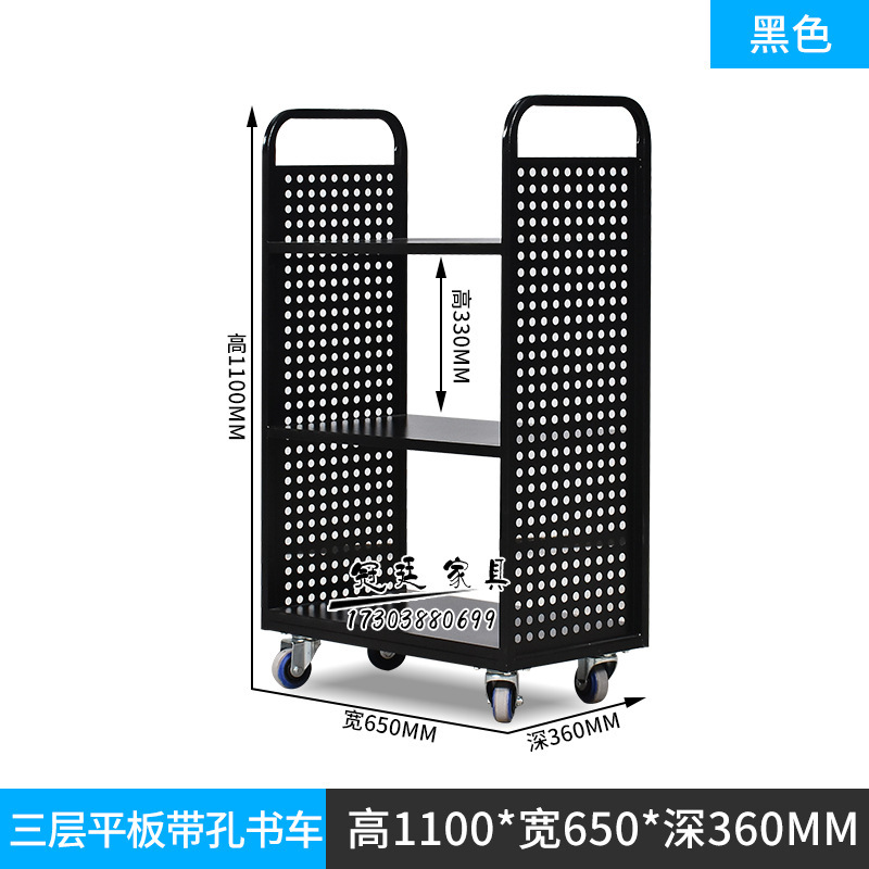 • 검정색 3단 책 카트(포켓 포함)