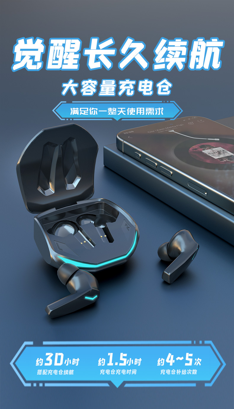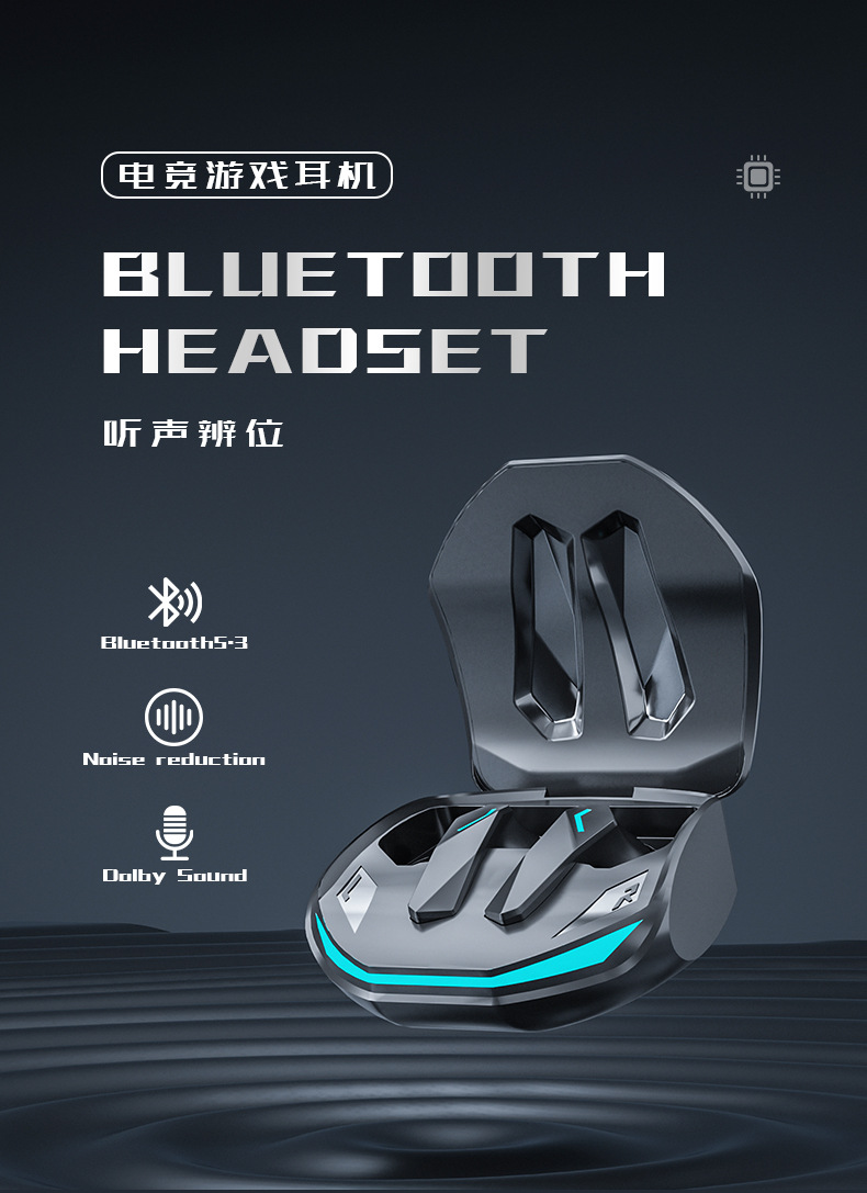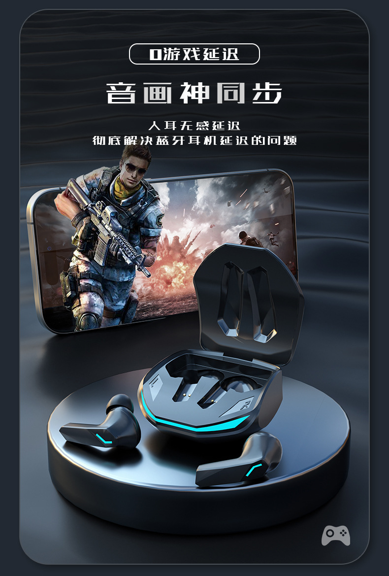 국경 간 인기 e-스포츠 게임 Bluetooth 무선 헤드셋 TWS 이어폰 형 소음 감소 초장기 배터리 수명 0 지연 호흡 램프